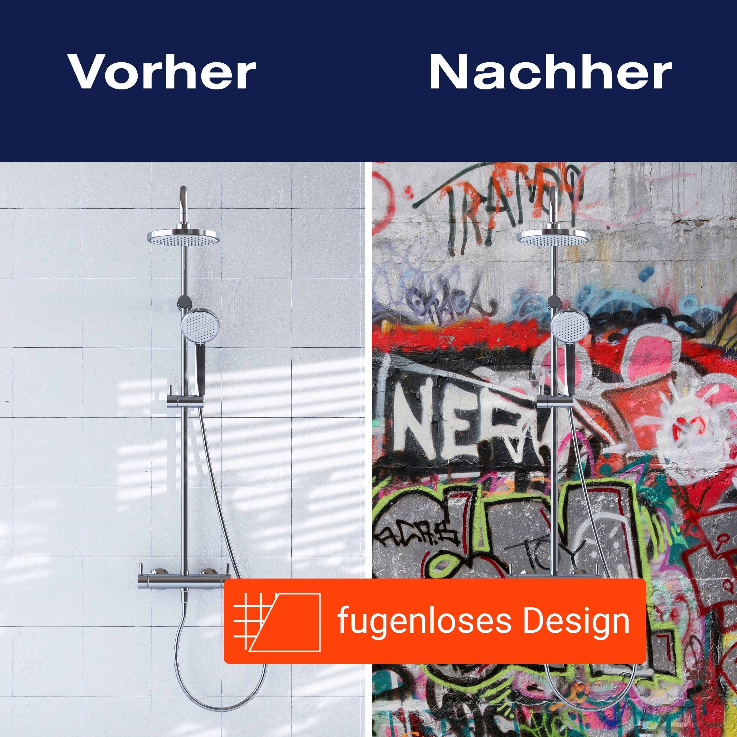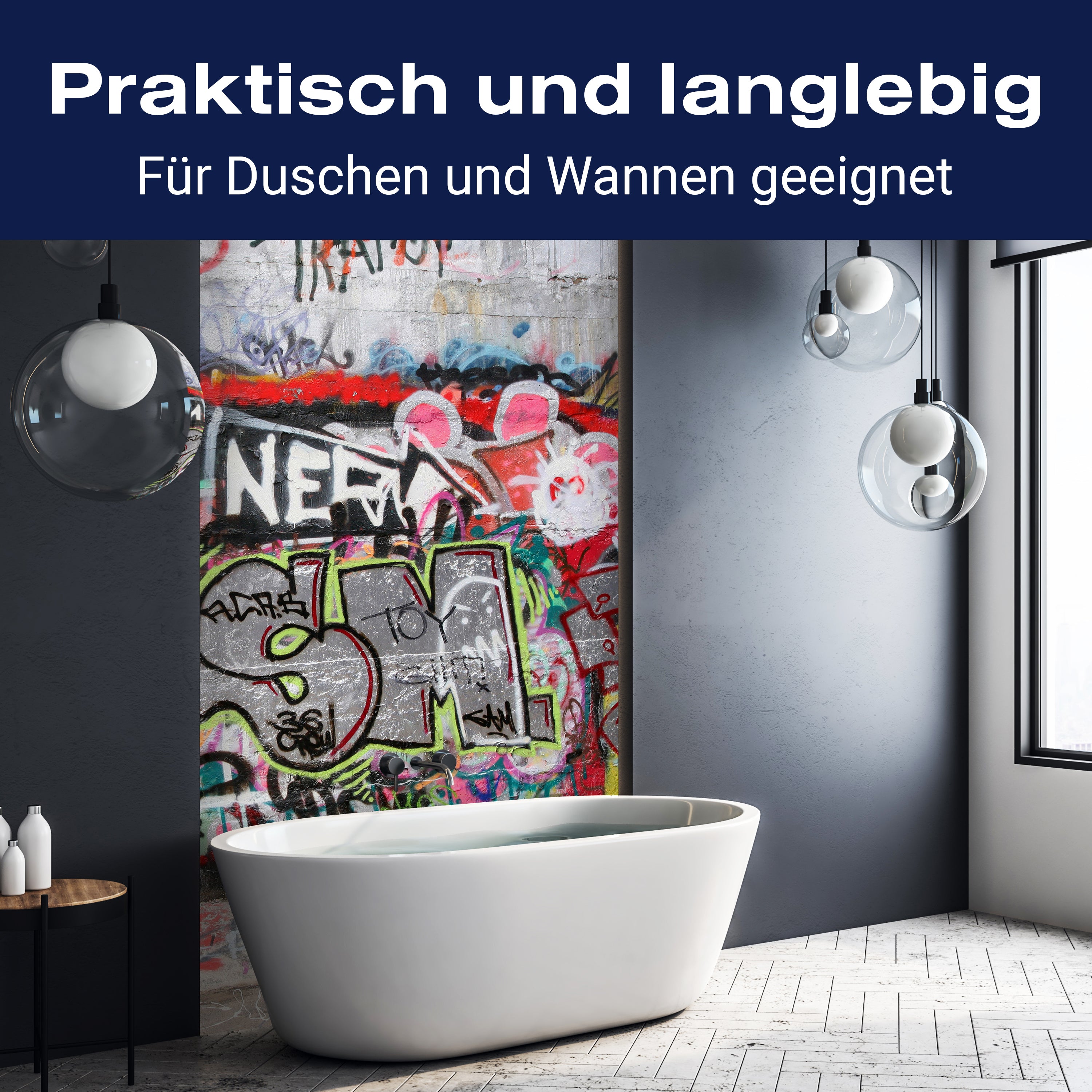 Bist du es leid, auf die langweiligen, schwer zu reinigende Fliesen in deiner Dusche zu schauen? Stell dir vor, wie dein Bad mit einer stilvollen, modernen Rückwand zum Leben erwacht! Unsere Duschwand 'Graffiti 3' ist nicht nur ein optisches Highlight, sondern auch praktisch und pflegeleicht.