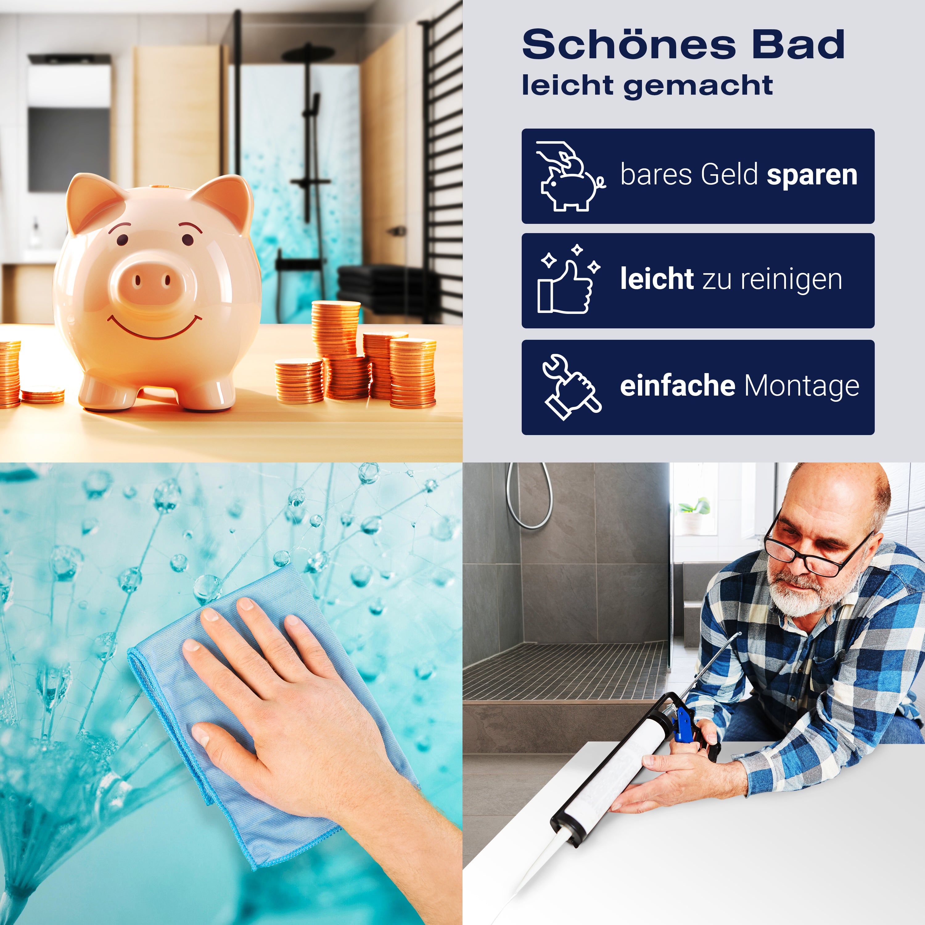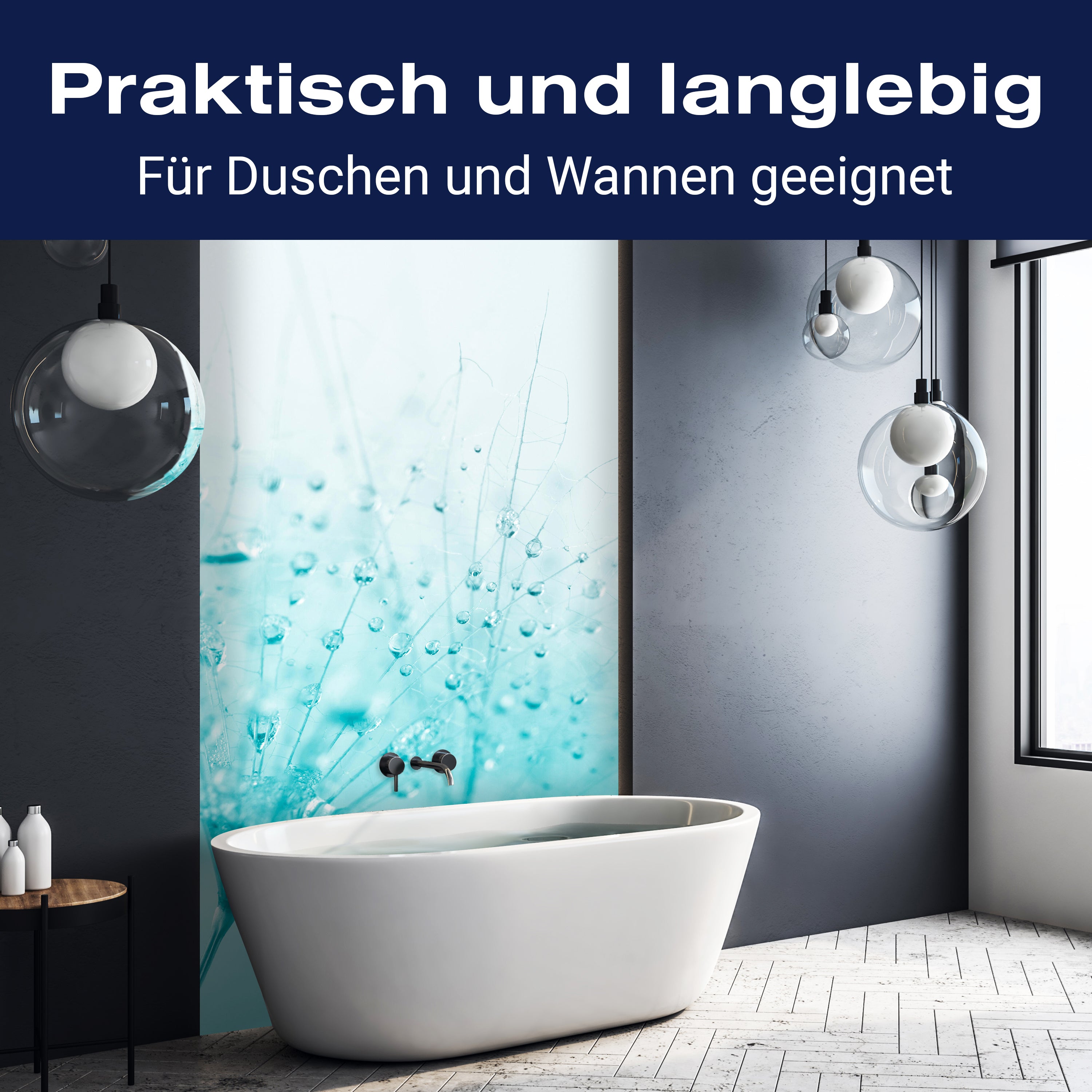 Bist du es leid, auf die langweiligen, schwer zu reinigende Fliesen in deiner Dusche zu schauen? Stell dir vor, wie dein Bad mit einer stilvollen, modernen Rückwand zum Leben erwacht! Unsere Duschwand 'Pusteblume Türkis' ist nicht nur ein optisches Highlight, sondern auch praktisch und pflegeleicht.