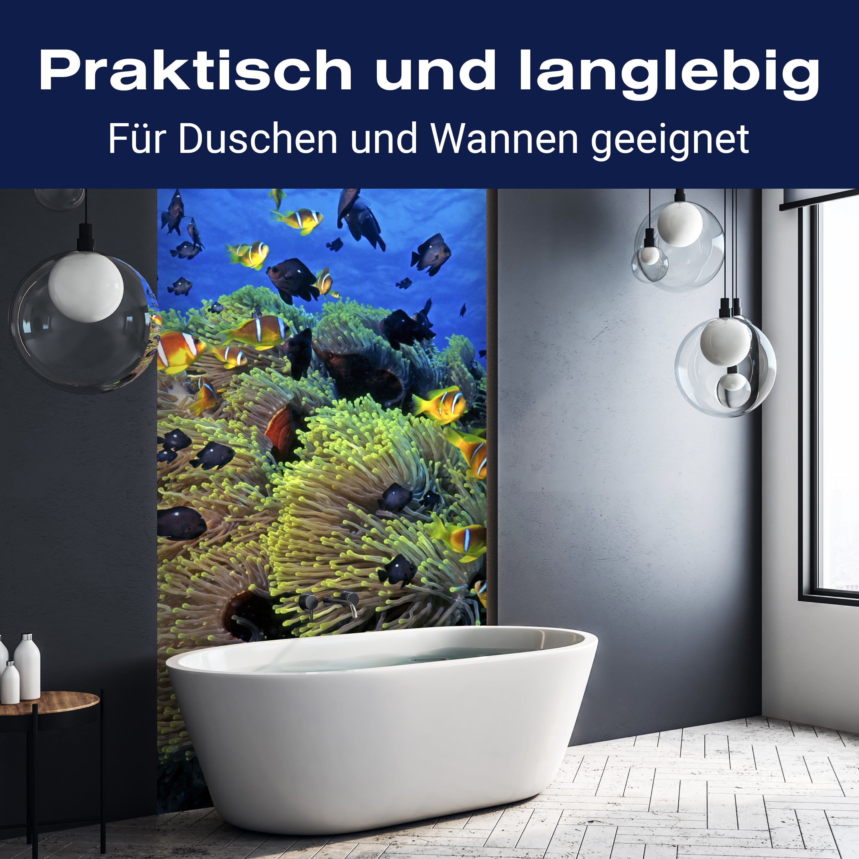 Bist du es leid, auf die langweiligen, schwer zu reinigende Fliesen in deiner Dusche zu schauen? Stell dir vor, wie dein Bad mit einer stilvollen, modernen Rückwand zum Leben erwacht! Unsere Duschwand 'Unterwasserriff' ist nicht nur ein optisches Highlight, sondern auch praktisch und pflegeleicht.