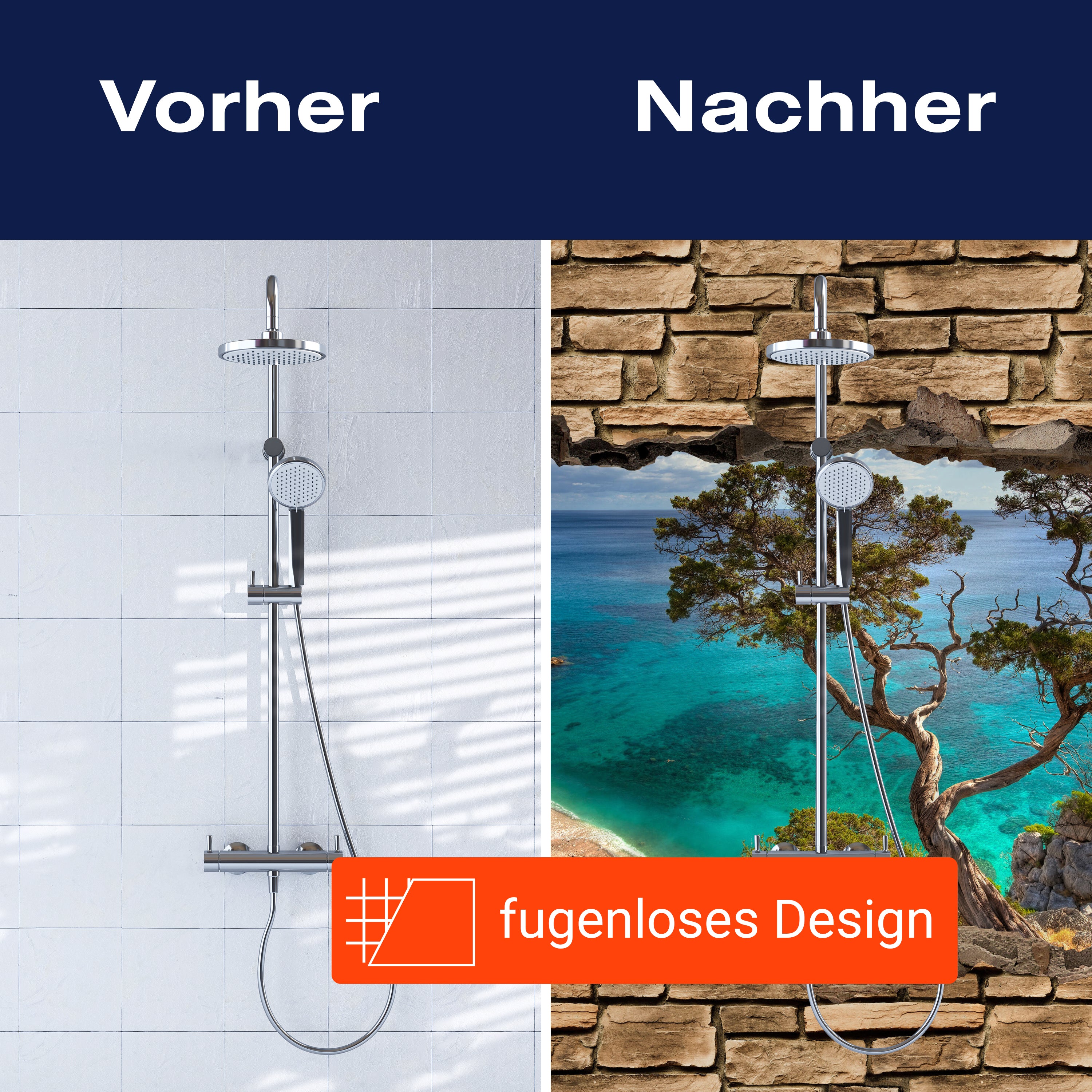 Vergiss die Tage, an denen Spritzer und Flecken deine Dusche ruiniert haben. Mit der Duschrückwand '3D Alter Baum auf einer Klippe - Steinmauer' gehören solche Sorgen der Vergangenheit an. Das hochwertige Material sorgt dafür, dass deine Dusche gegen Wasser und andere alltägliche Missgeschicke resistent ist. Ein einfacher Wisch, und sie sieht aus wie neu – ohne den Einsatz von aggressiven Reinigungsmitteln.