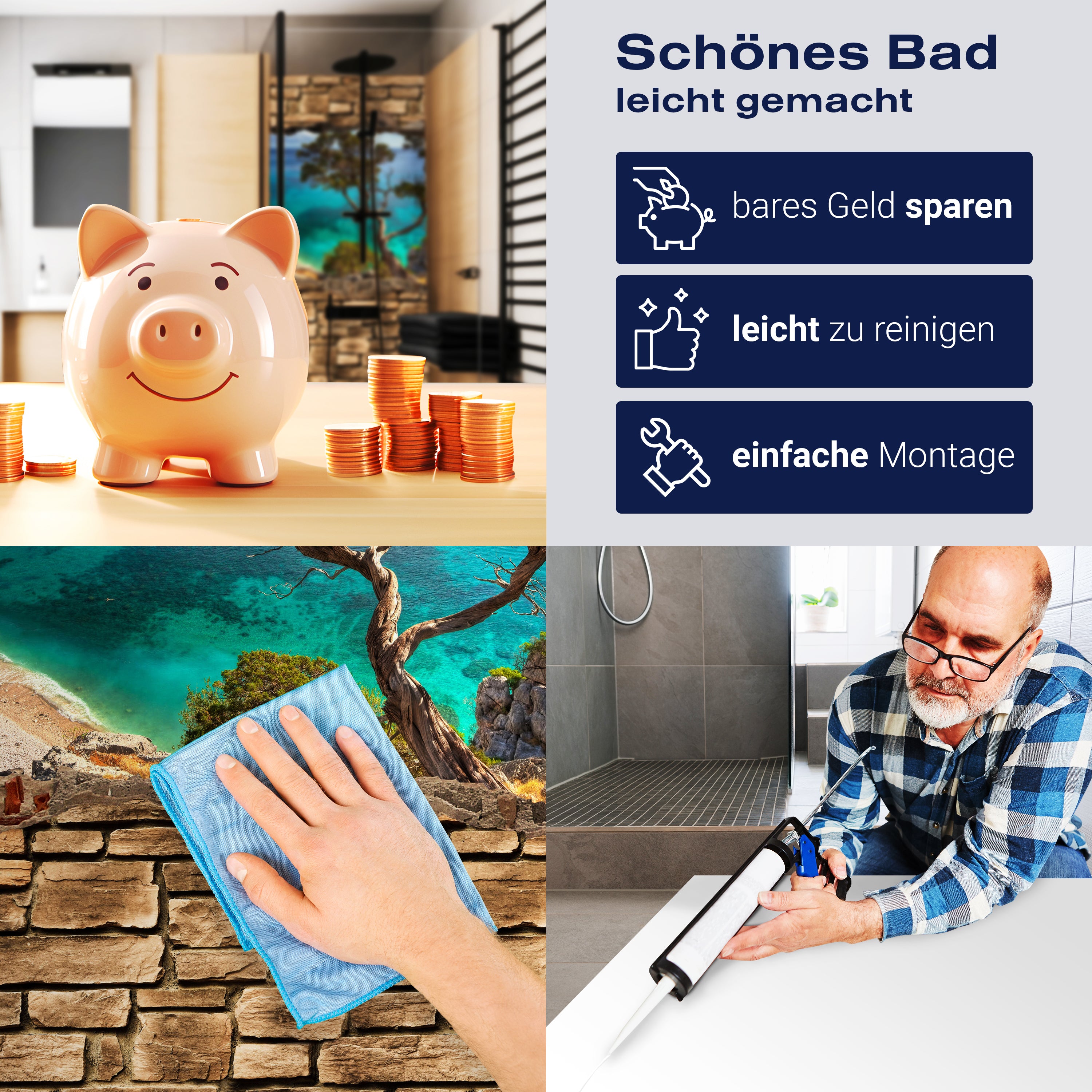 Diese Materialien bieten im Vergleich zu traditionellen Fliesen mehrere Vorteile. Sie haben eine fugenlose Oberfläche, was bedeutet, dass sie weniger anfällig für Schimmelbildung und leichter zu reinigen sind, da sich Schmutz und Kalk nicht in Fugen festsetzen können. Darüber hinaus ermöglichen sie eine schnelle und einfache Renovierung, da sie direkt über bestehenden Fliesen montiert werden können, was Zeit und Kosten spart