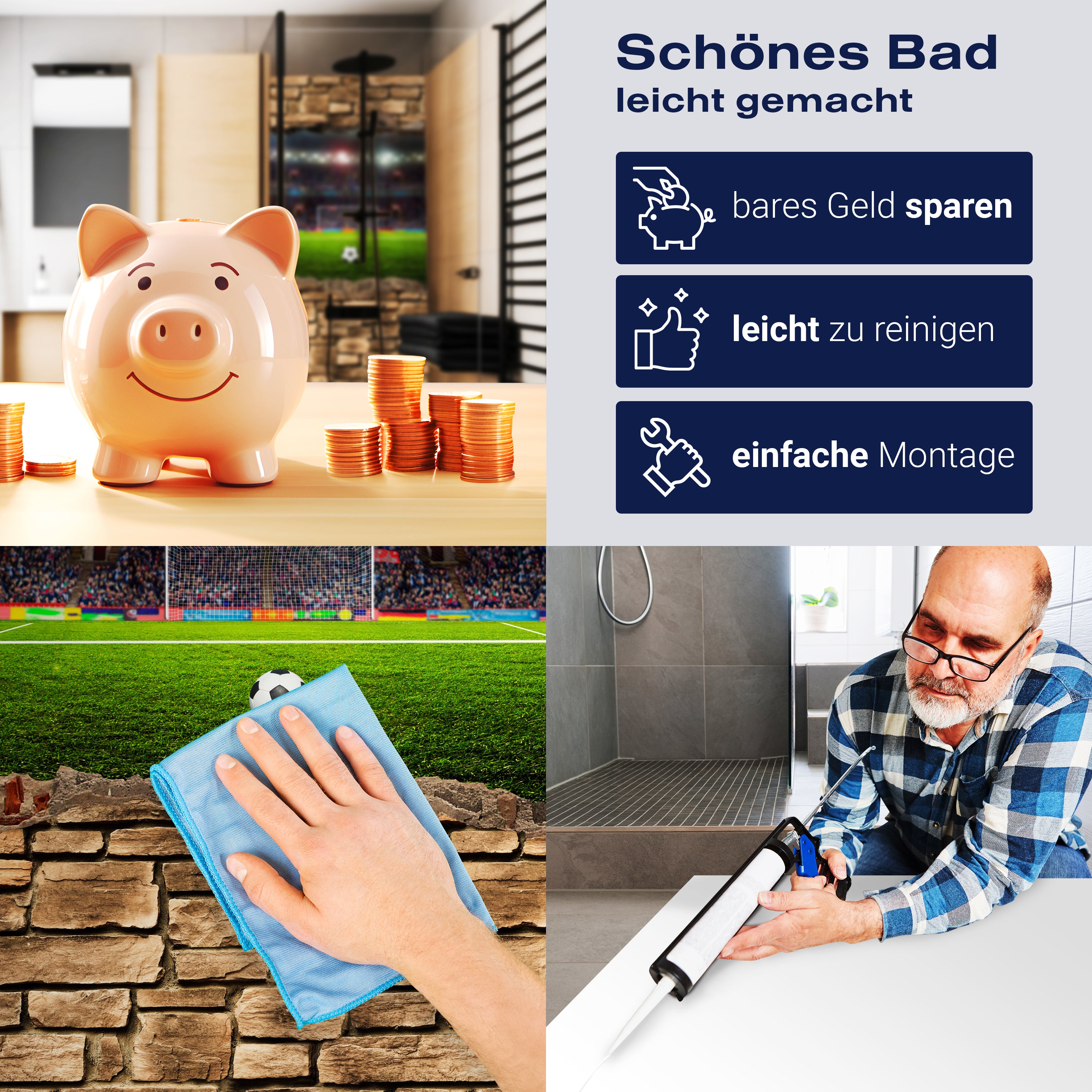 Diese Materialien bieten im Vergleich zu traditionellen Fliesen mehrere Vorteile. Sie haben eine fugenlose Oberfläche, was bedeutet, dass sie weniger anfällig für Schimmelbildung und leichter zu reinigen sind, da sich Schmutz und Kalk nicht in Fugen festsetzen können. Darüber hinaus ermöglichen sie eine schnelle und einfache Renovierung, da sie direkt über bestehenden Fliesen montiert werden können, was Zeit und Kosten spart