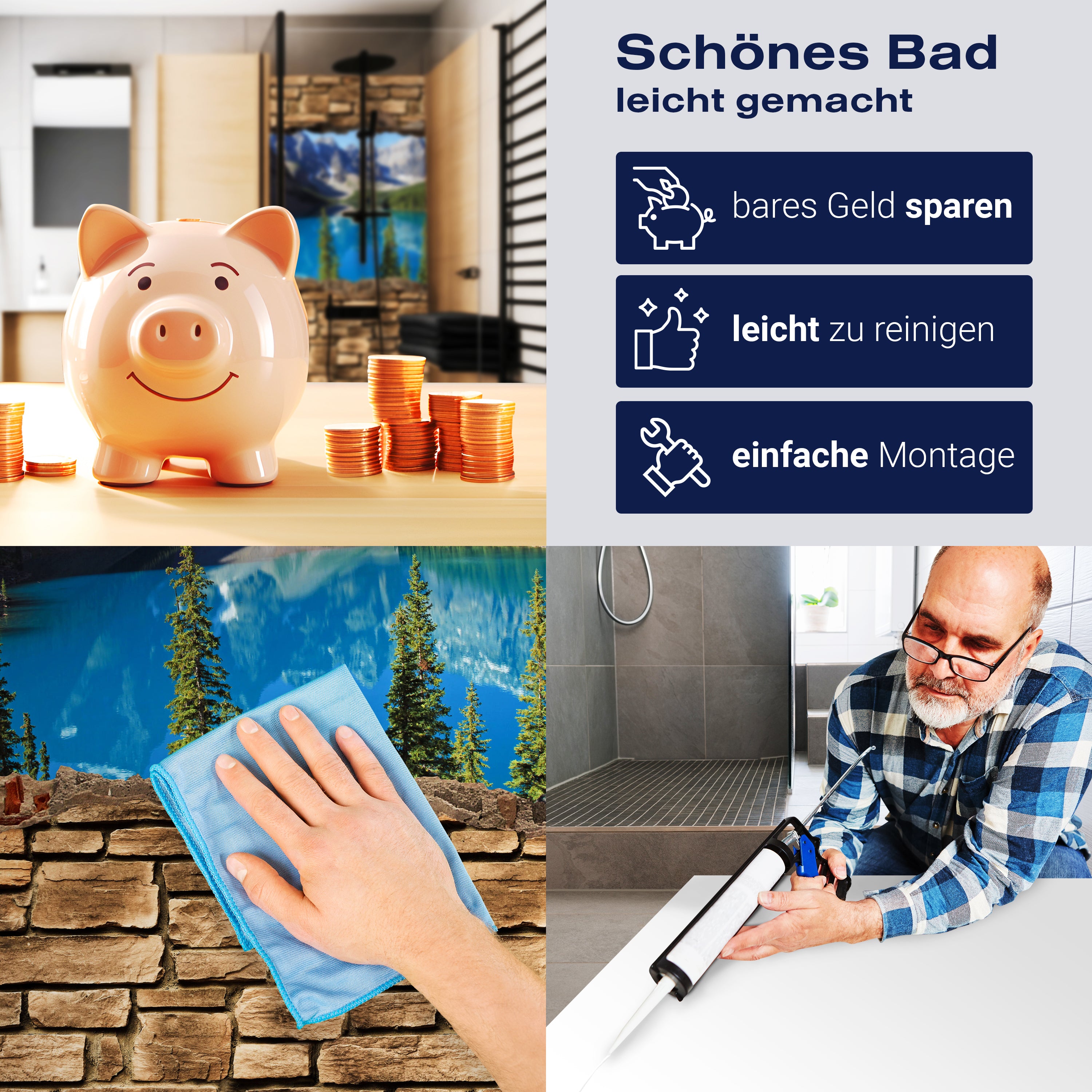 Diese Materialien bieten im Vergleich zu traditionellen Fliesen mehrere Vorteile. Sie haben eine fugenlose Oberfläche, was bedeutet, dass sie weniger anfällig für Schimmelbildung und leichter zu reinigen sind, da sich Schmutz und Kalk nicht in Fugen festsetzen können. Darüber hinaus ermöglichen sie eine schnelle und einfache Renovierung, da sie direkt über bestehenden Fliesen montiert werden können, was Zeit und Kosten spart