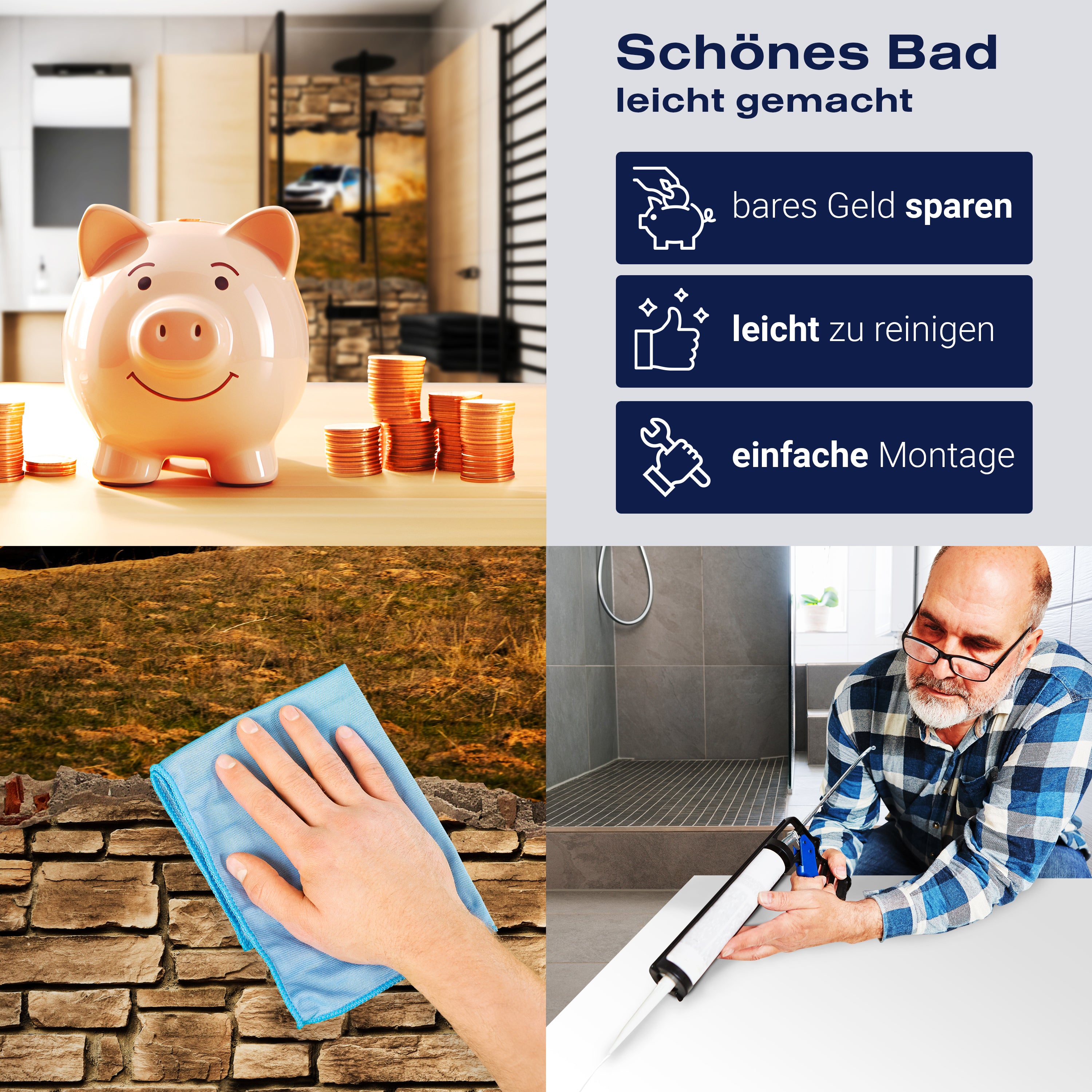 Diese Materialien bieten im Vergleich zu traditionellen Fliesen mehrere Vorteile. Sie haben eine fugenlose Oberfläche, was bedeutet, dass sie weniger anfällig für Schimmelbildung und leichter zu reinigen sind, da sich Schmutz und Kalk nicht in Fugen festsetzen können. Darüber hinaus ermöglichen sie eine schnelle und einfache Renovierung, da sie direkt über bestehenden Fliesen montiert werden können, was Zeit und Kosten spart