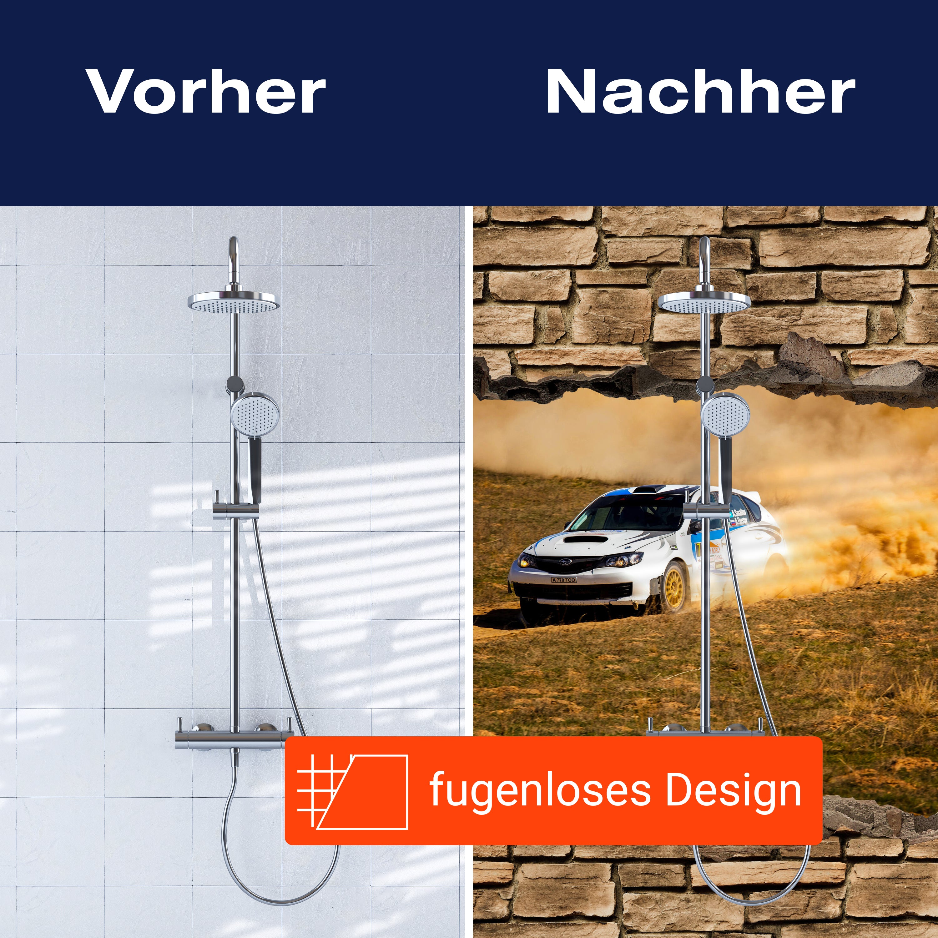Bist du es leid, auf die langweiligen, schwer zu reinigende Fliesen in deiner Dusche zu schauen? Stell dir vor, wie dein Bad mit einer stilvollen, modernen Rückwand zum Leben erwacht! Unsere Duschwand '3D Rallye Auto - Steinmauer' ist nicht nur ein optisches Highlight, sondern auch praktisch und pflegeleicht.