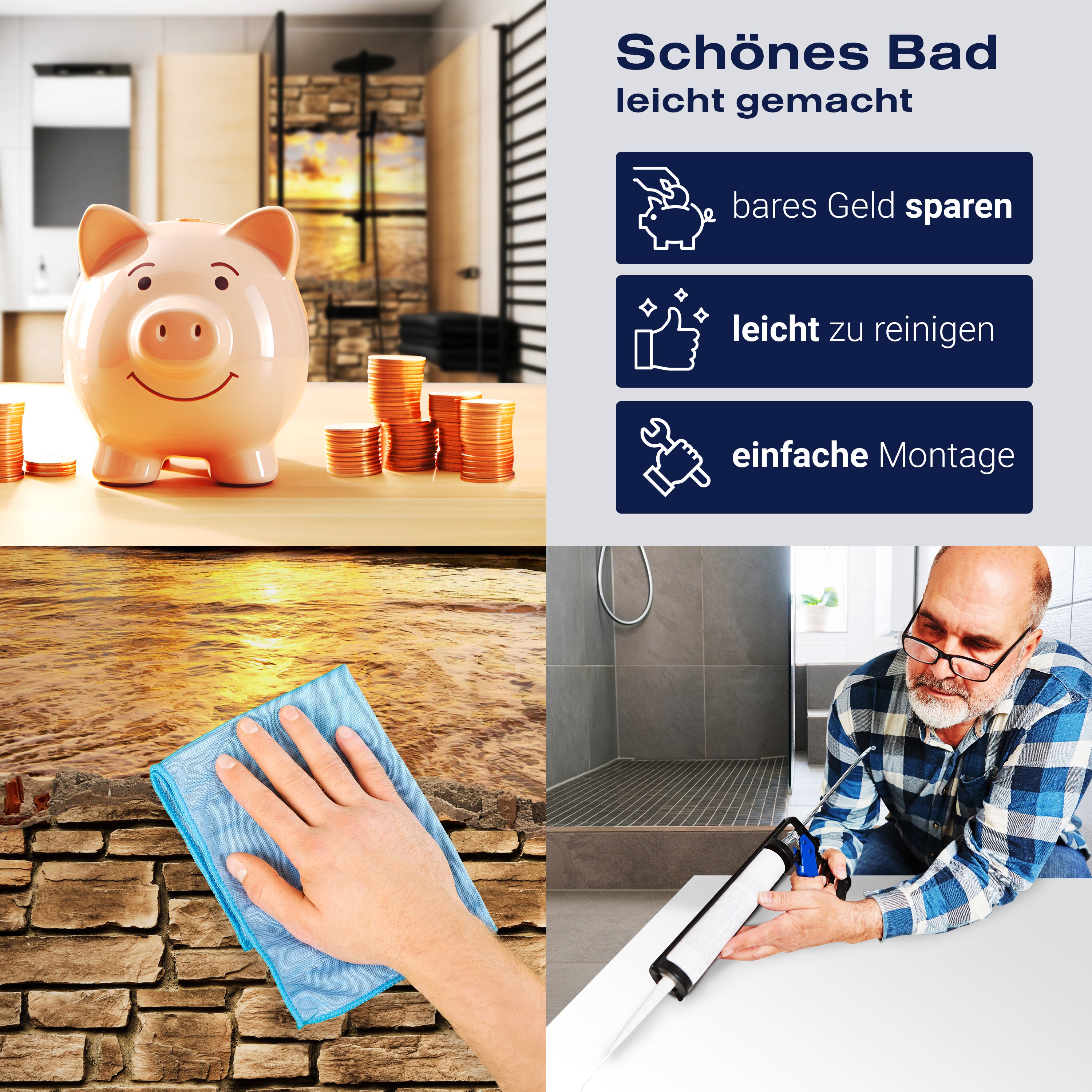 Diese Materialien bieten im Vergleich zu traditionellen Fliesen mehrere Vorteile. Sie haben eine fugenlose Oberfläche, was bedeutet, dass sie weniger anfällig für Schimmelbildung und leichter zu reinigen sind, da sich Schmutz und Kalk nicht in Fugen festsetzen können. Darüber hinaus ermöglichen sie eine schnelle und einfache Renovierung, da sie direkt über bestehenden Fliesen montiert werden können, was Zeit und Kosten spart