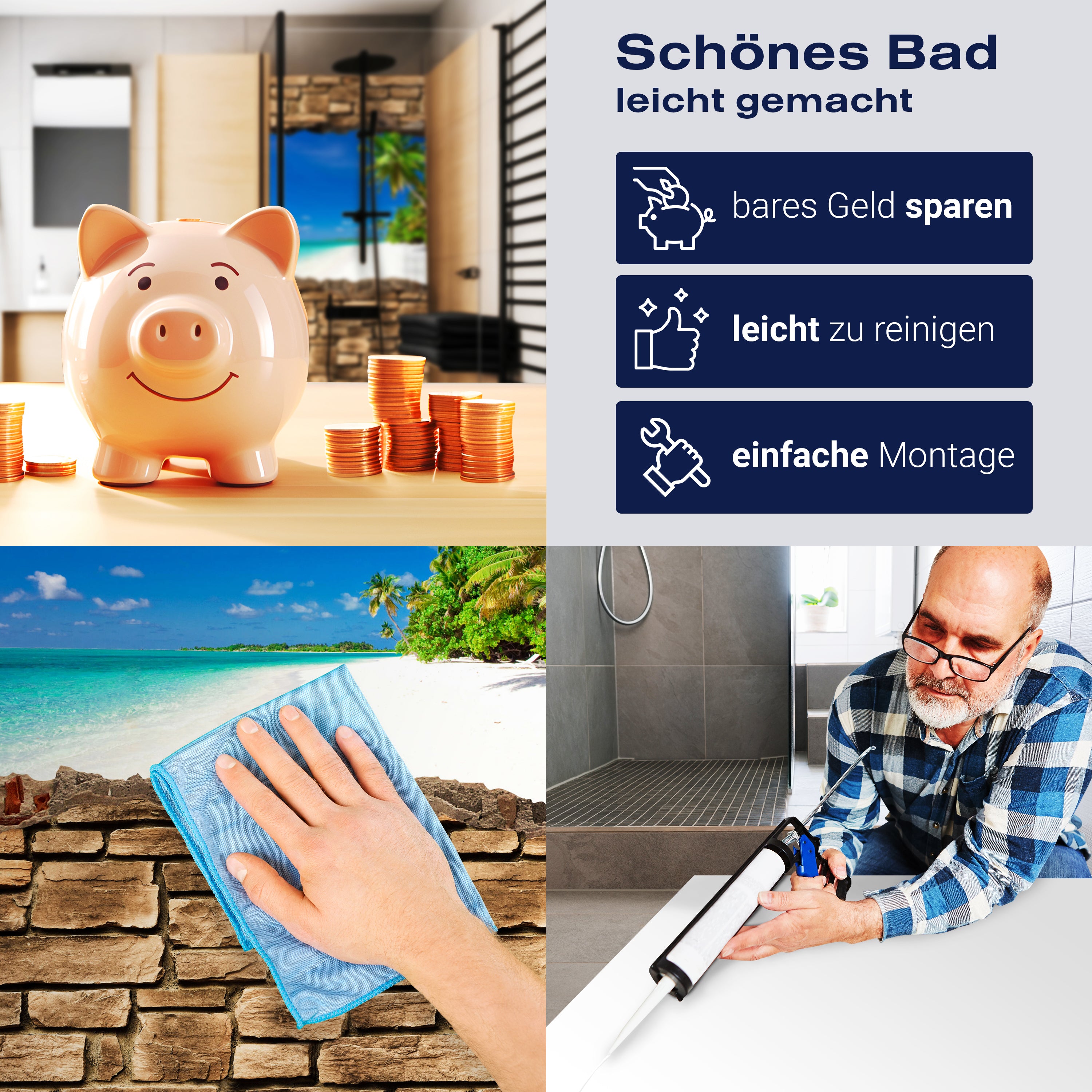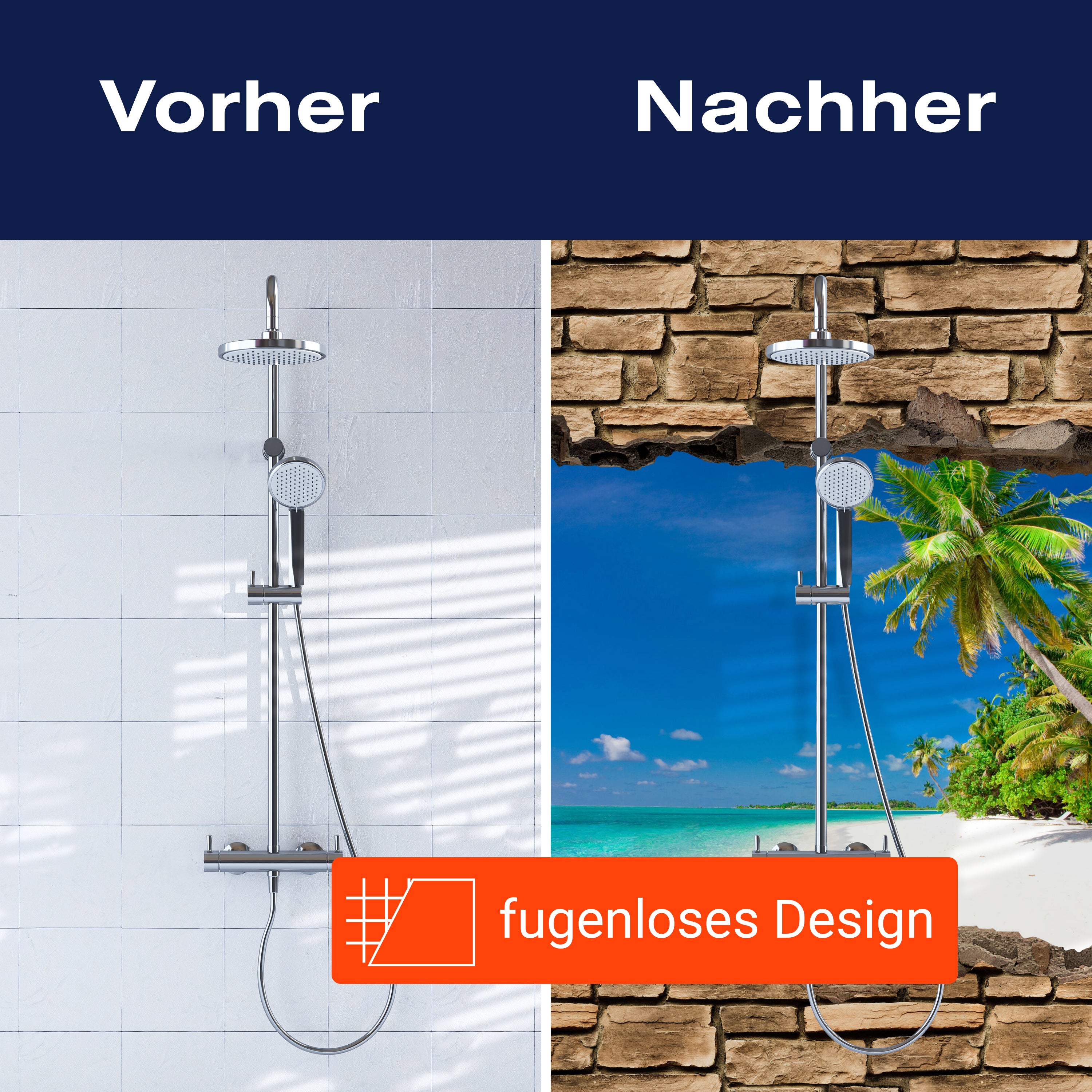 Bist du es leid, auf die langweiligen, schwer zu reinigende Fliesen in deiner Dusche zu schauen? Stell dir vor, wie dein Bad mit einer stilvollen, modernen Rückwand zum Leben erwacht! Unsere Duschwand '3D Südsee - Steinmauer' ist nicht nur ein optisches Highlight, sondern auch praktisch und pflegeleicht.