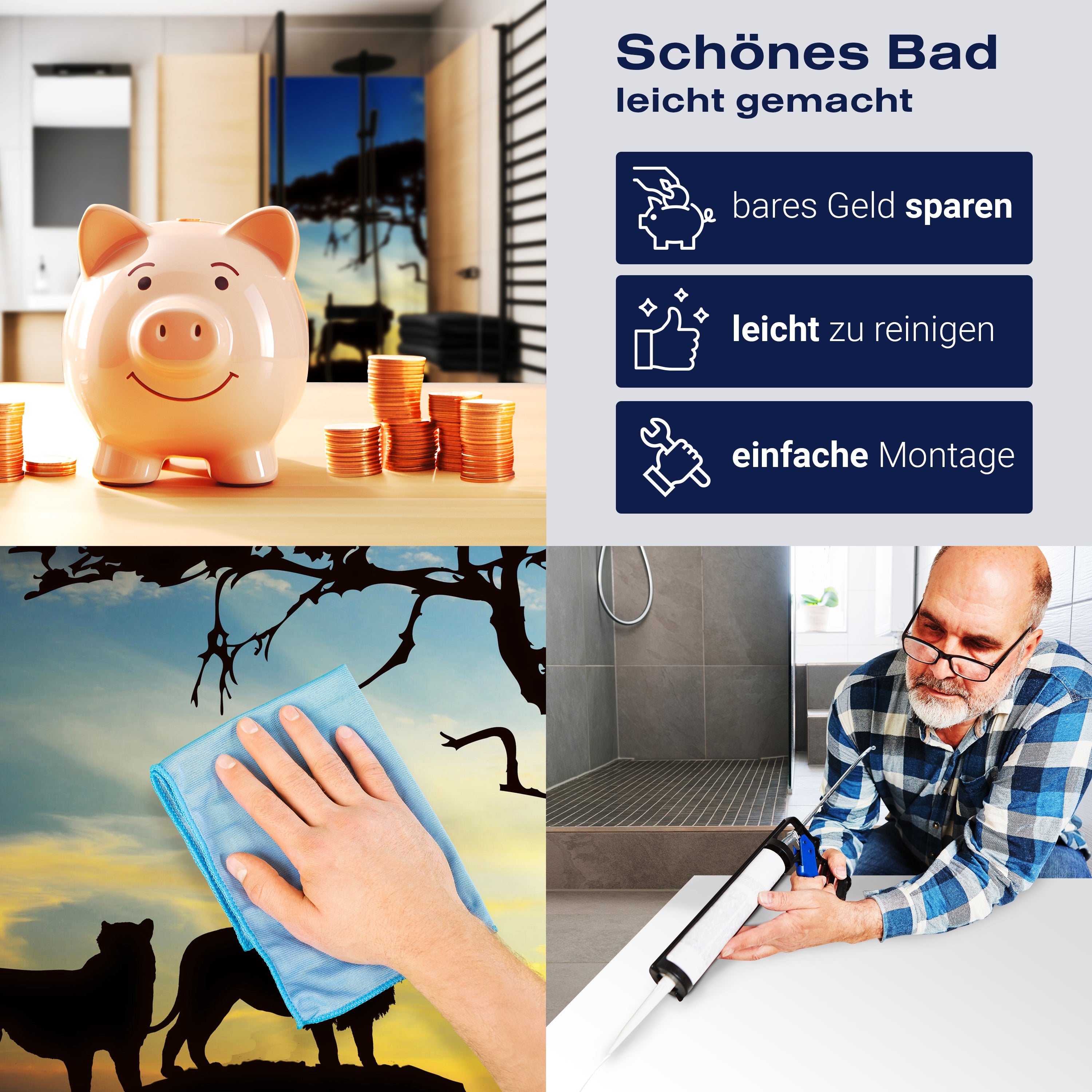 Vergiss die Tage, an denen Spritzer und Flecken deine Dusche ruiniert haben. Mit der Duschrückwand 'Afrikanische Schatten' gehören solche Sorgen der Vergangenheit an. Das hochwertige Material sorgt dafür, dass deine Dusche gegen Wasser und andere alltägliche Missgeschicke resistent ist. Ein einfacher Wisch, und sie sieht aus wie neu – ohne den Einsatz von aggressiven Reinigungsmitteln.