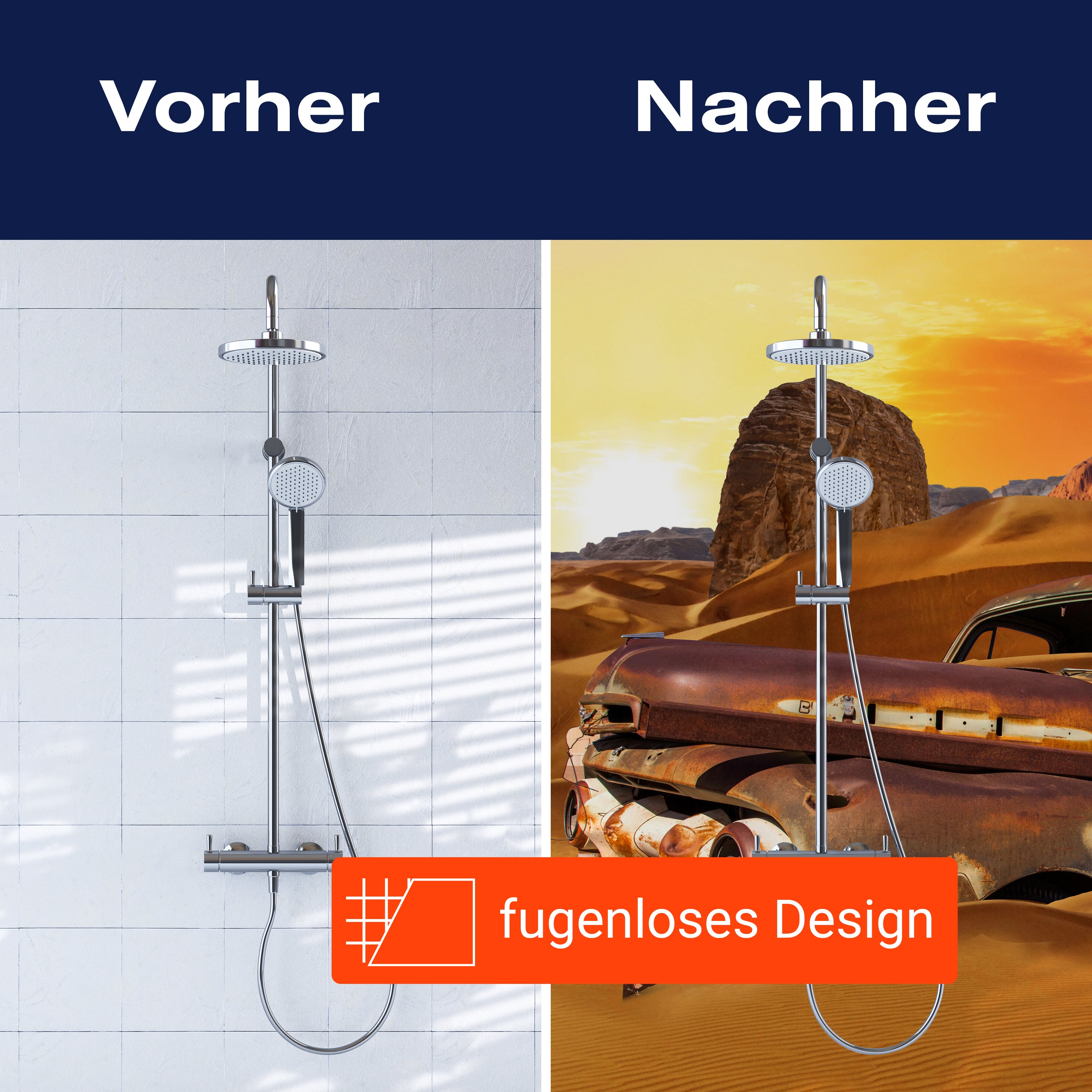 Bist du es leid, auf die langweiligen, schwer zu reinigende Fliesen in deiner Dusche zu schauen? Stell dir vor, wie dein Bad mit einer stilvollen, modernen Rückwand zum Leben erwacht! Unsere Duschwand 'Altes Auto' ist nicht nur ein optisches Highlight, sondern auch praktisch und pflegeleicht.
