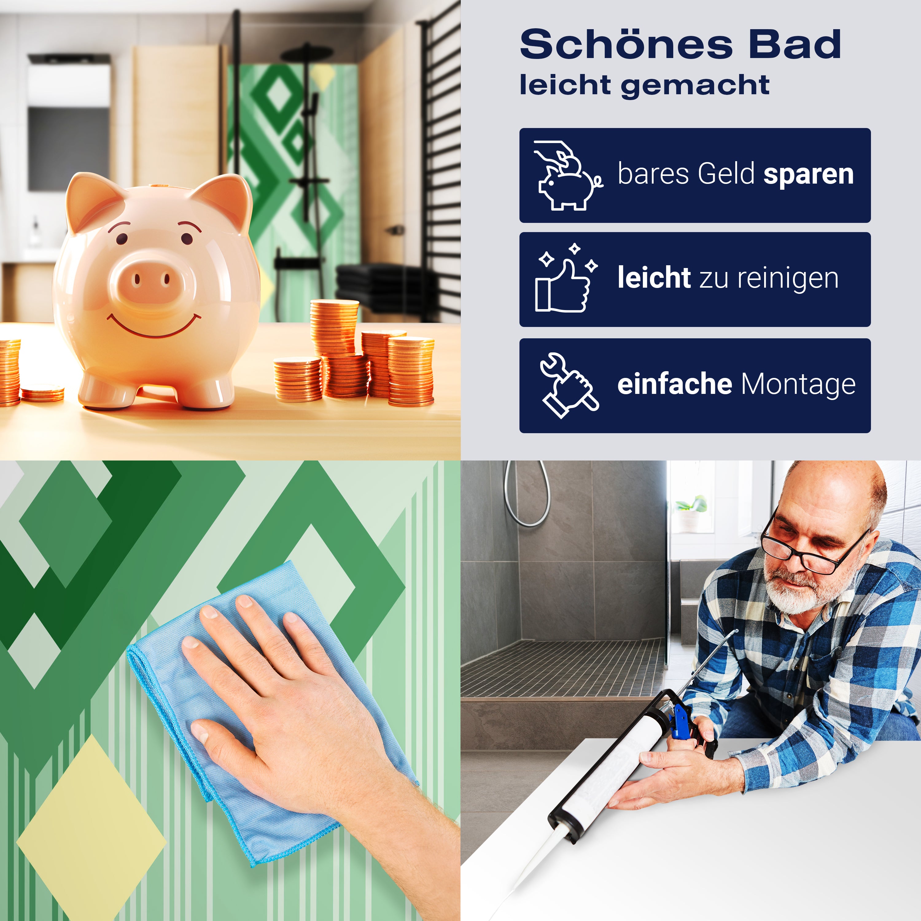 Diese Materialien bieten im Vergleich zu traditionellen Fliesen mehrere Vorteile. Sie haben eine fugenlose Oberfläche, was bedeutet, dass sie weniger anfällig für Schimmelbildung und leichter zu reinigen sind, da sich Schmutz und Kalk nicht in Fugen festsetzen können. Darüber hinaus ermöglichen sie eine schnelle und einfache Renovierung, da sie direkt über bestehenden Fliesen montiert werden können, was Zeit und Kosten spart