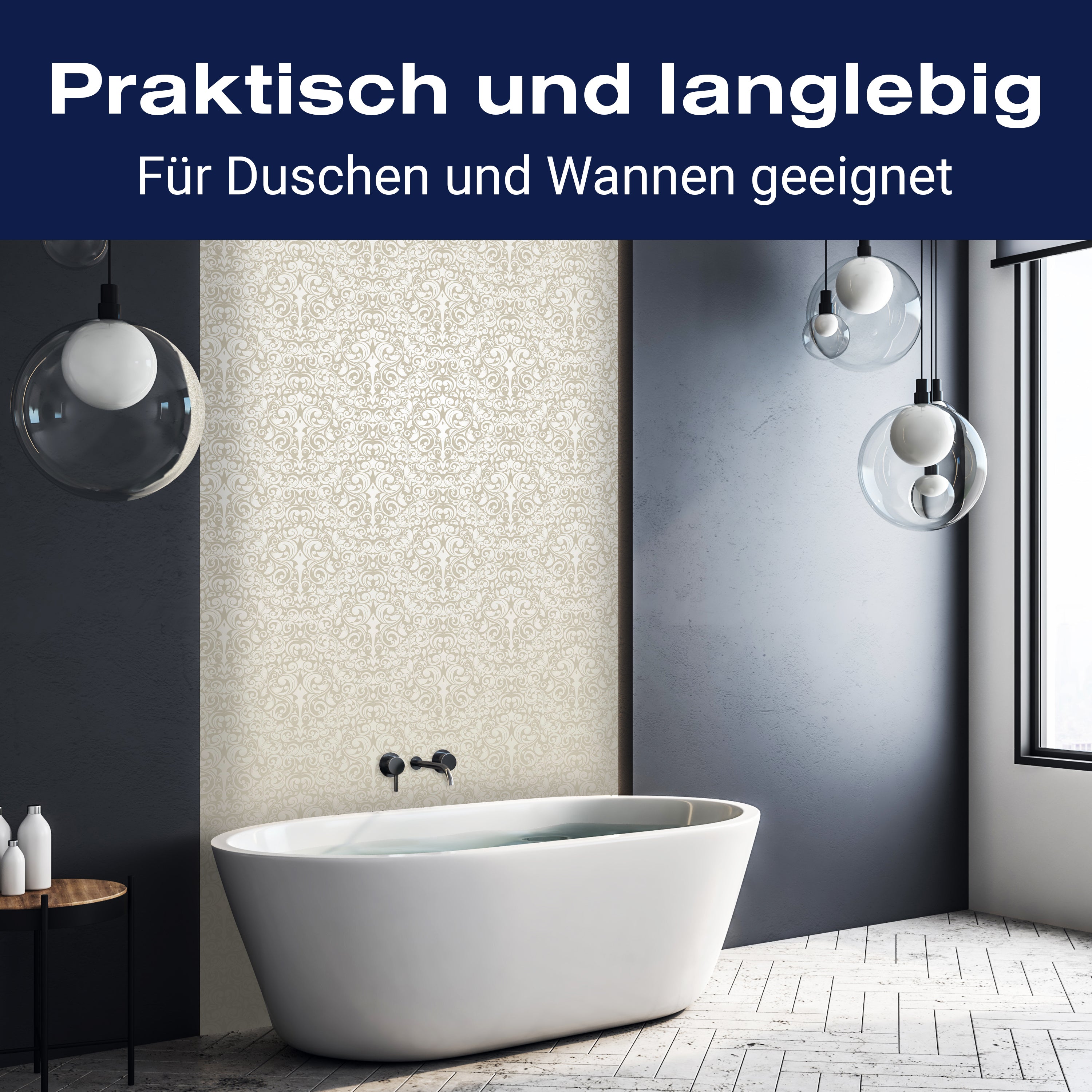 Bist du es leid, auf die langweiligen, schwer zu reinigende Fliesen in deiner Dusche zu schauen? Stell dir vor, wie dein Bad mit einer stilvollen, modernen Rückwand zum Leben erwacht! Unsere Duschwand 'Barockmuster Beige' ist nicht nur ein optisches Highlight, sondern auch praktisch und pflegeleicht.
