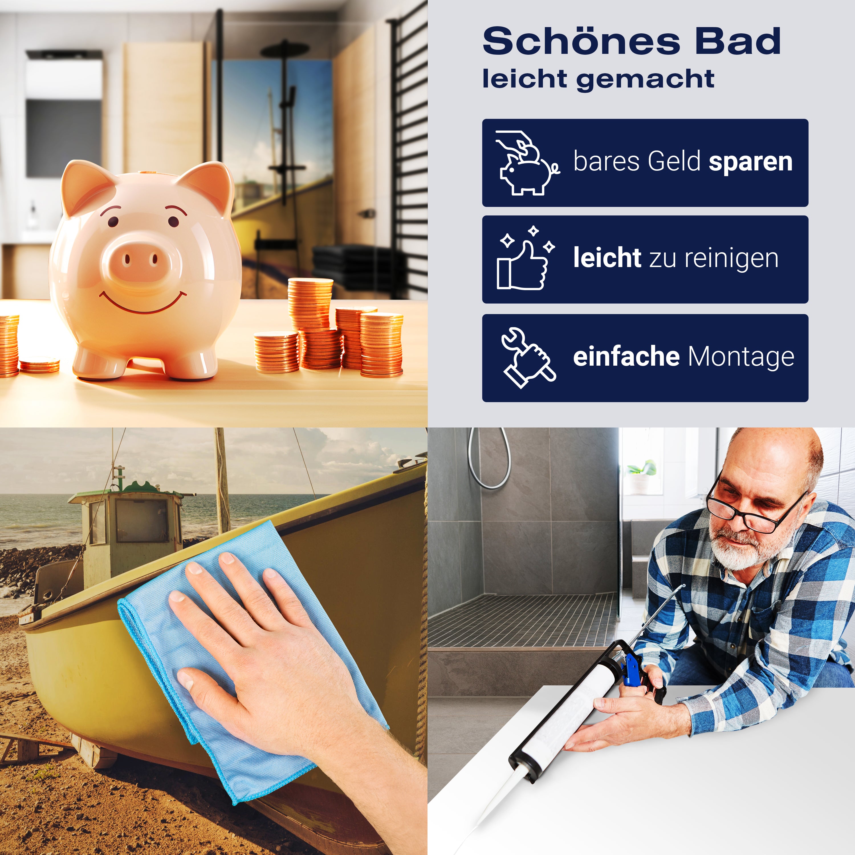 Diese Materialien bieten im Vergleich zu traditionellen Fliesen mehrere Vorteile. Sie haben eine fugenlose Oberfläche, was bedeutet, dass sie weniger anfällig für Schimmelbildung und leichter zu reinigen sind, da sich Schmutz und Kalk nicht in Fugen festsetzen können. Darüber hinaus ermöglichen sie eine schnelle und einfache Renovierung, da sie direkt über bestehenden Fliesen montiert werden können, was Zeit und Kosten spart
