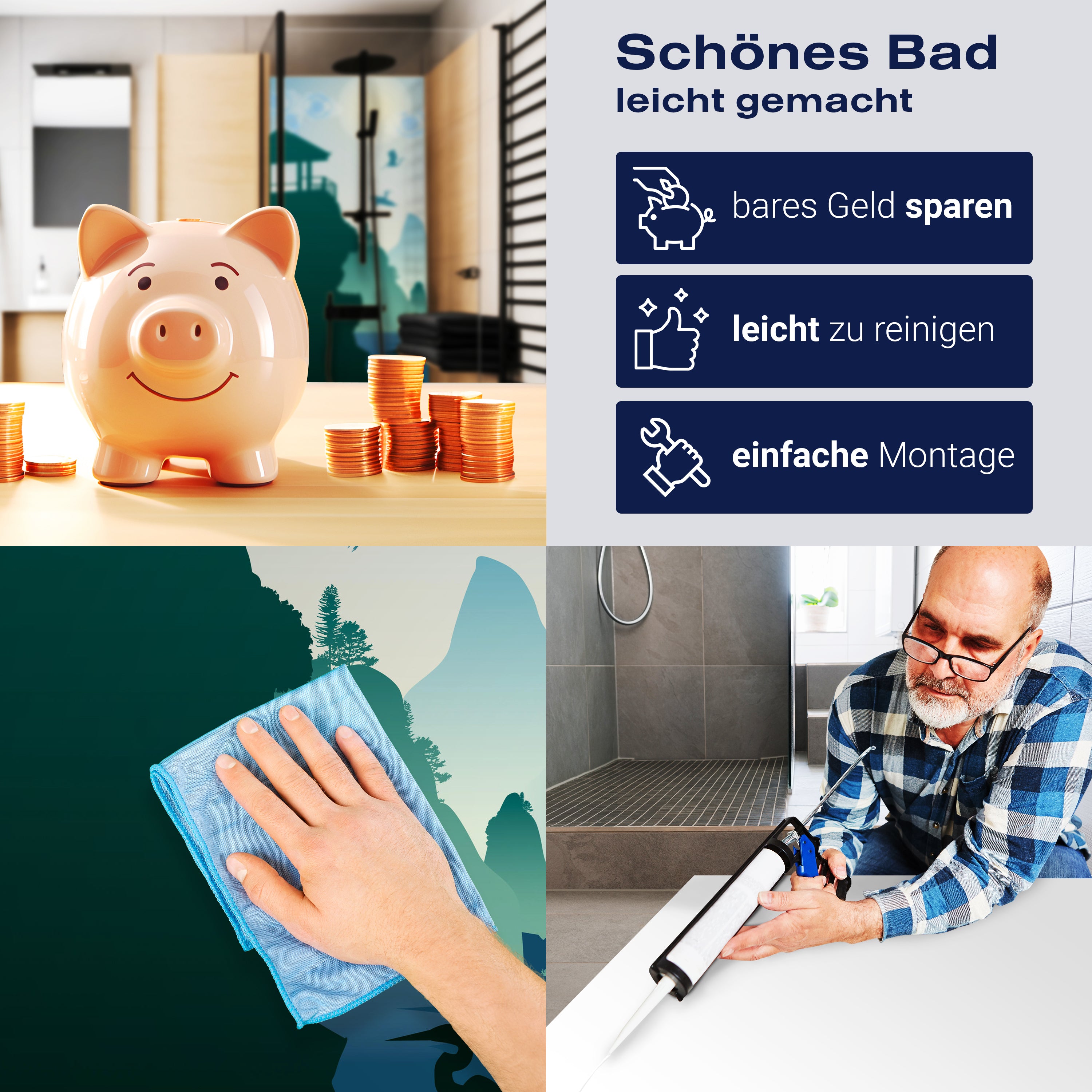 Diese Materialien bieten im Vergleich zu traditionellen Fliesen mehrere Vorteile. Sie haben eine fugenlose Oberfläche, was bedeutet, dass sie weniger anfällig für Schimmelbildung und leichter zu reinigen sind, da sich Schmutz und Kalk nicht in Fugen festsetzen können. Darüber hinaus ermöglichen sie eine schnelle und einfache Renovierung, da sie direkt über bestehenden Fliesen montiert werden können, was Zeit und Kosten spart