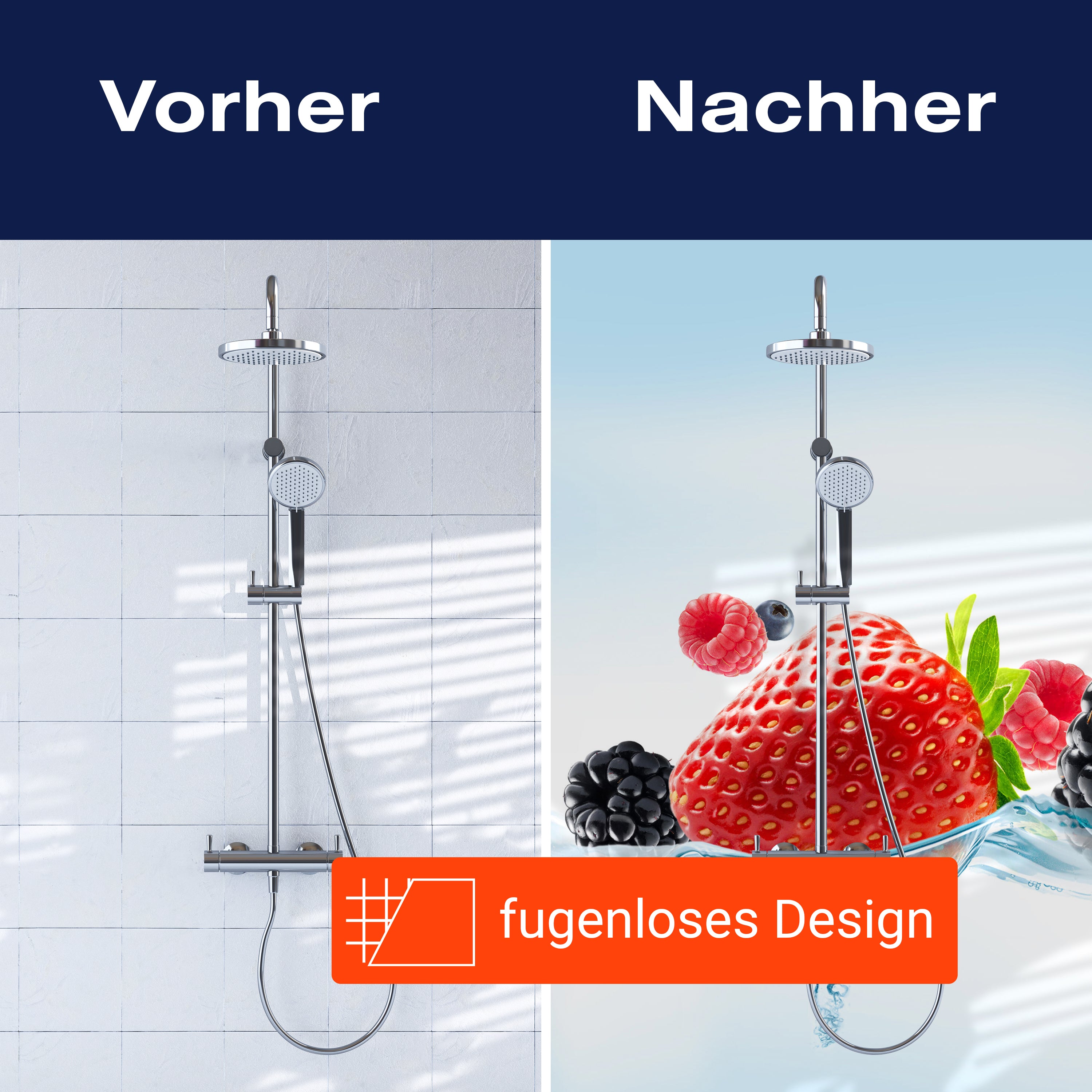 Bist du es leid, auf die langweiligen, schwer zu reinigende Fliesen in deiner Dusche zu schauen? Stell dir vor, wie dein Bad mit einer stilvollen, modernen Rückwand zum Leben erwacht! Unsere Duschwand 'Close up Blick frische Beeren' ist nicht nur ein optisches Highlight, sondern auch praktisch und pflegeleicht.