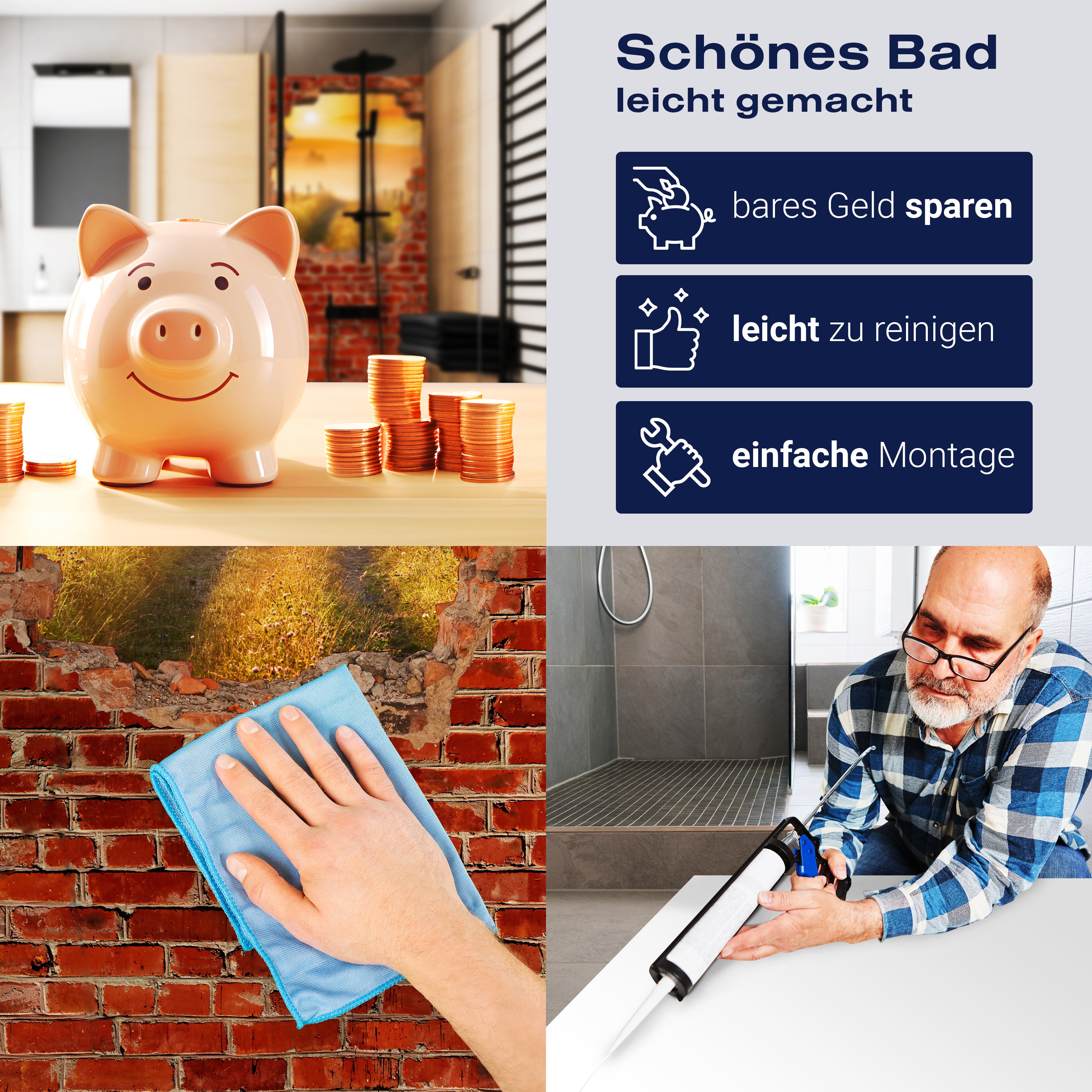 Diese Materialien bieten im Vergleich zu traditionellen Fliesen mehrere Vorteile. Sie haben eine fugenlose Oberfläche, was bedeutet, dass sie weniger anfällig für Schimmelbildung und leichter zu reinigen sind, da sich Schmutz und Kalk nicht in Fugen festsetzen können. Darüber hinaus ermöglichen sie eine schnelle und einfache Renovierung, da sie direkt über bestehenden Fliesen montiert werden können, was Zeit und Kosten spart