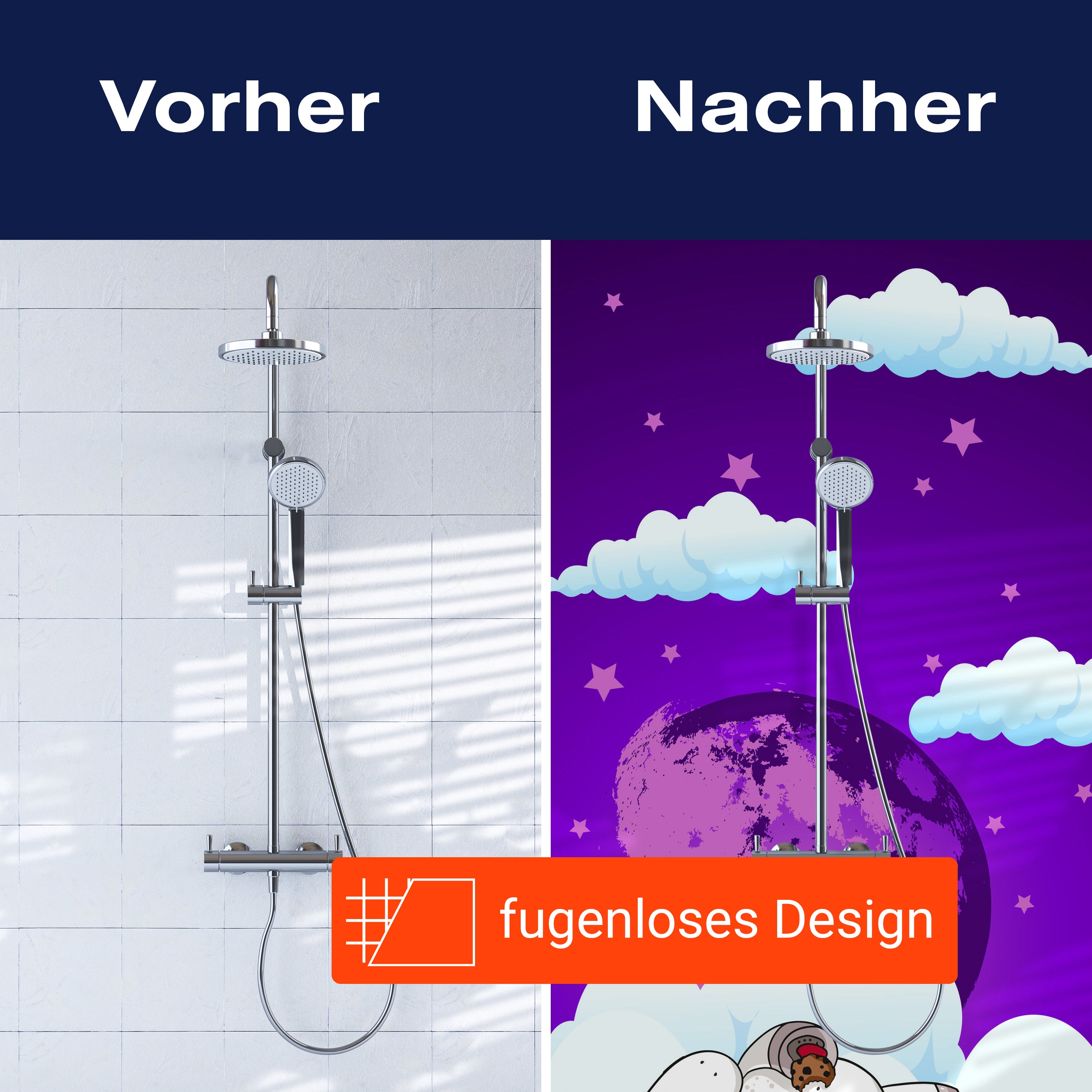 Vergiss die Tage, an denen Spritzer und Flecken deine Dusche ruiniert haben. Mit der Duschrückwand 'Einhorn Traum' gehören solche Sorgen der Vergangenheit an. Das hochwertige Material sorgt dafür, dass deine Dusche gegen Wasser und andere alltägliche Missgeschicke resistent ist. Ein einfacher Wisch, und sie sieht aus wie neu – ohne den Einsatz von aggressiven Reinigungsmitteln.