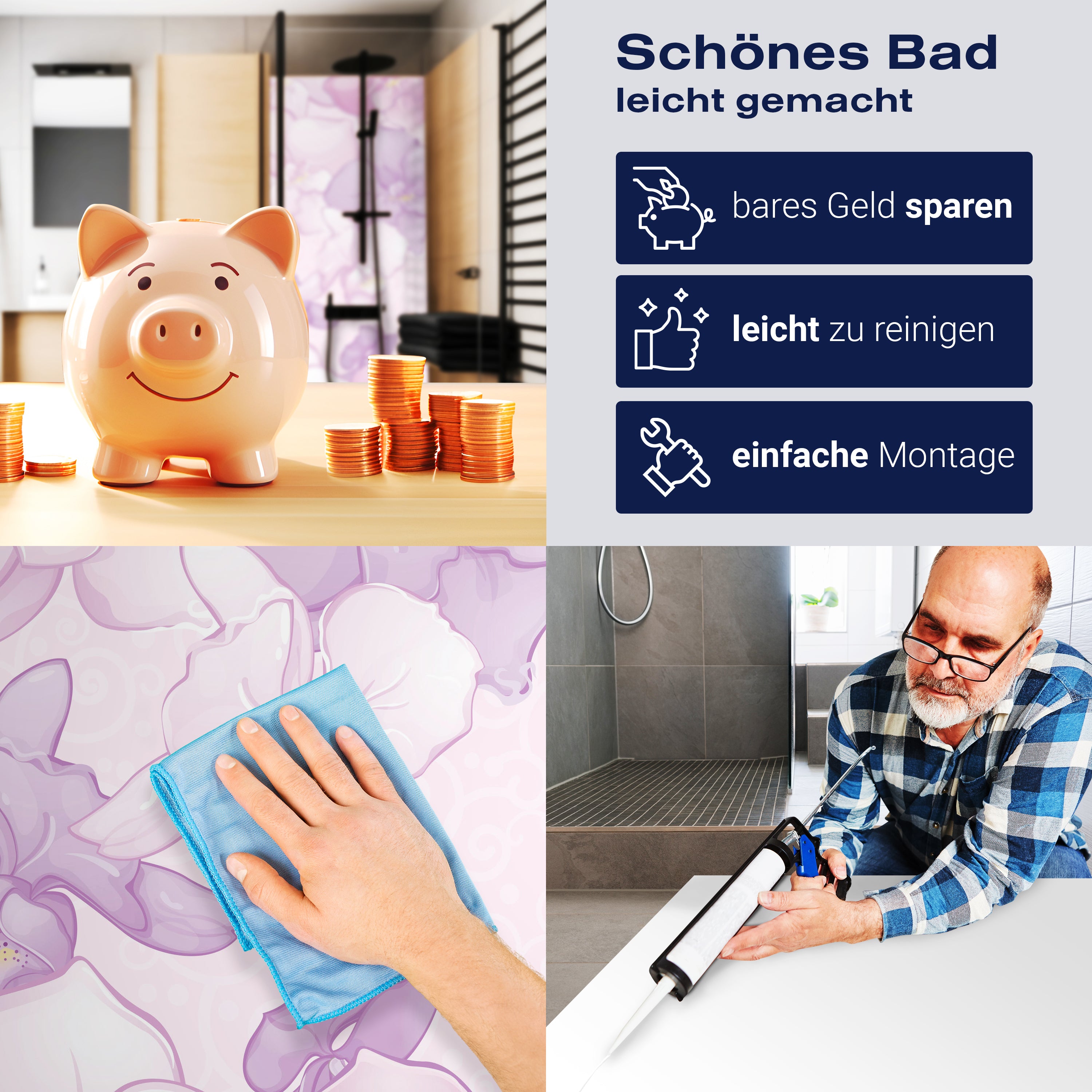 ür eine optimale Langlebigkeit ist es wichtig, die Duschrückwände richtig zu pflegen. Sie sollten regelmäßig mit einem weichen Tuch und milden Reinigungsmitteln gereinigt werden, um Kalk- und Seifenrückstände zu entfernen. Scheuermittel oder aggressive Chemikalien sollten vermieden werden, da diese die Oberfläche beschädigen können. Die fugenlose Oberfläche vereinfacht die Reinigung erheblich und trägt dazu bei, dass die Wandverkleidung hygienisch und ansprechend bleibt