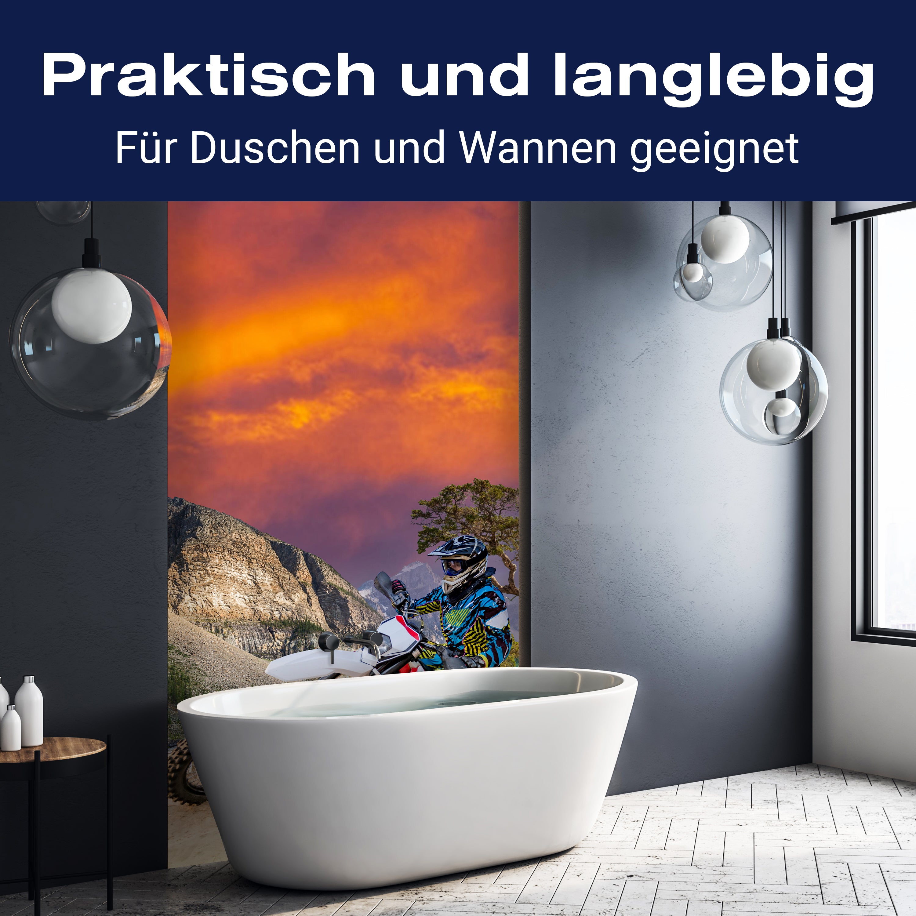 Bist du es leid, auf die langweiligen, schwer zu reinigende Fliesen in deiner Dusche zu schauen? Stell dir vor, wie dein Bad mit einer stilvollen, modernen Rückwand zum Leben erwacht! Unsere Duschwand 'Enduro Motorbike Racing' ist nicht nur ein optisches Highlight, sondern auch praktisch und pflegeleicht.