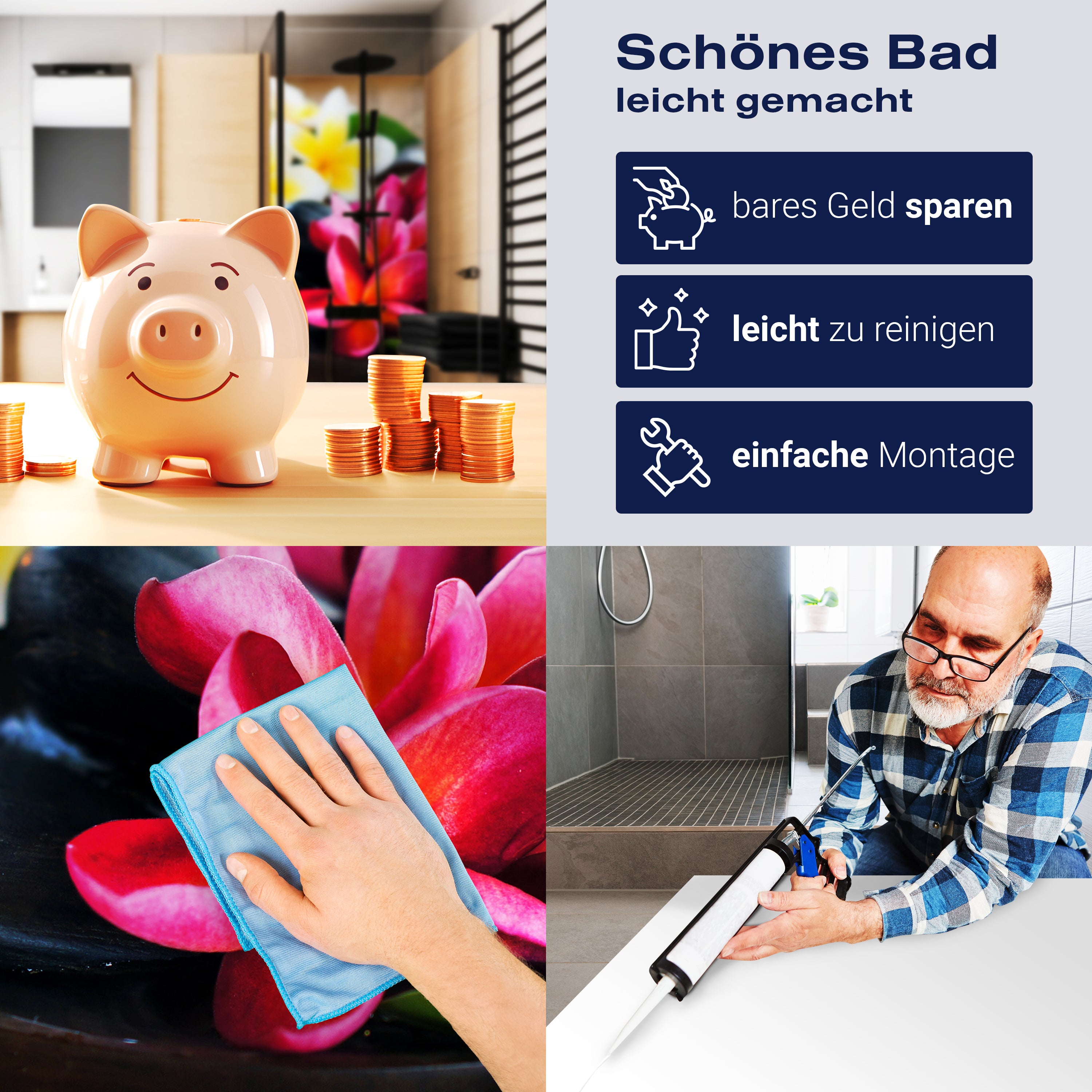 ür eine optimale Langlebigkeit ist es wichtig, die Duschrückwände richtig zu pflegen. Sie sollten regelmäßig mit einem weichen Tuch und milden Reinigungsmitteln gereinigt werden, um Kalk- und Seifenrückstände zu entfernen. Scheuermittel oder aggressive Chemikalien sollten vermieden werden, da diese die Oberfläche beschädigen können. Die fugenlose Oberfläche vereinfacht die Reinigung erheblich und trägt dazu bei, dass die Wandverkleidung hygienisch und ansprechend bleibt
