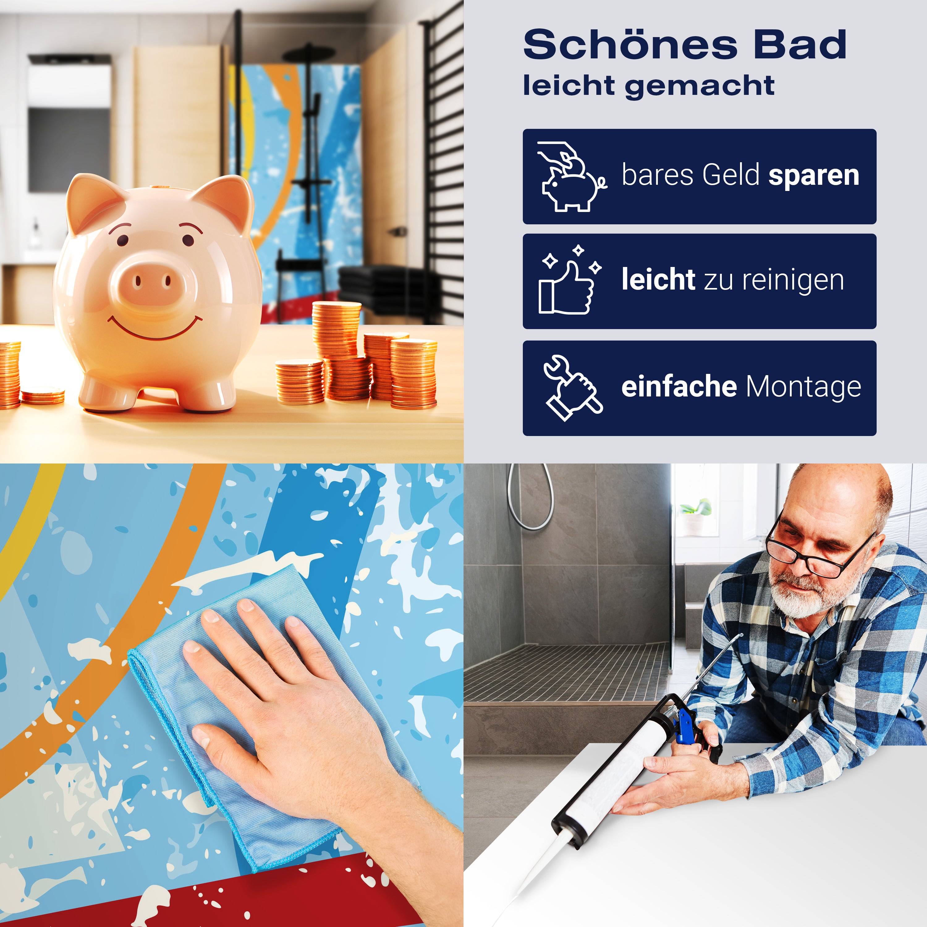 Diese Materialien bieten im Vergleich zu traditionellen Fliesen mehrere Vorteile. Sie haben eine fugenlose Oberfläche, was bedeutet, dass sie weniger anfällig für Schimmelbildung und leichter zu reinigen sind, da sich Schmutz und Kalk nicht in Fugen festsetzen können. Darüber hinaus ermöglichen sie eine schnelle und einfache Renovierung, da sie direkt über bestehenden Fliesen montiert werden können, was Zeit und Kosten spart