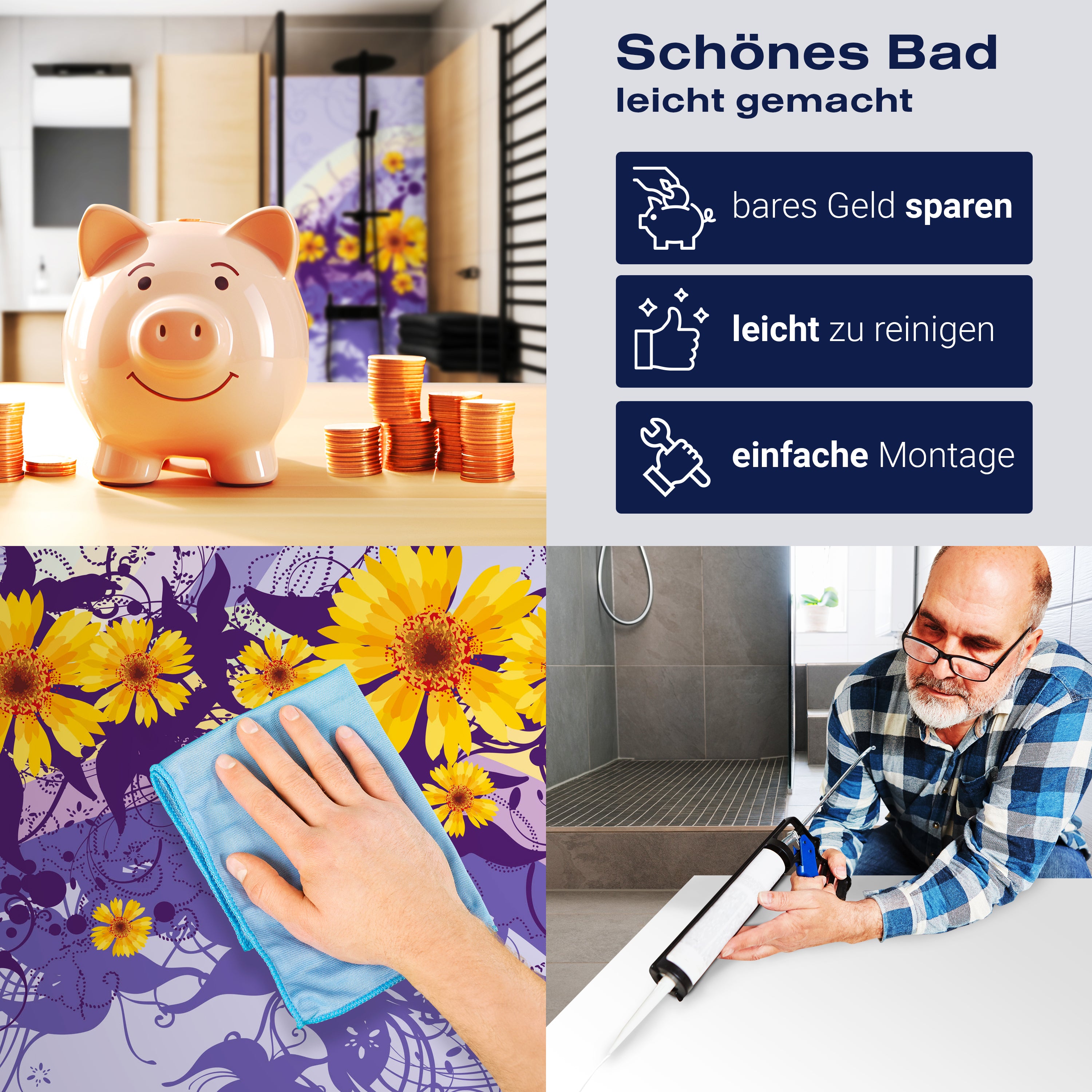 Bist du es leid, auf die langweiligen, schwer zu reinigende Fliesen in deiner Dusche zu schauen? Stell dir vor, wie dein Bad mit einer stilvollen, modernen Rückwand zum Leben erwacht! Unsere Duschwand 'Franziska Blüten' ist nicht nur ein optisches Highlight, sondern auch praktisch und pflegeleicht.