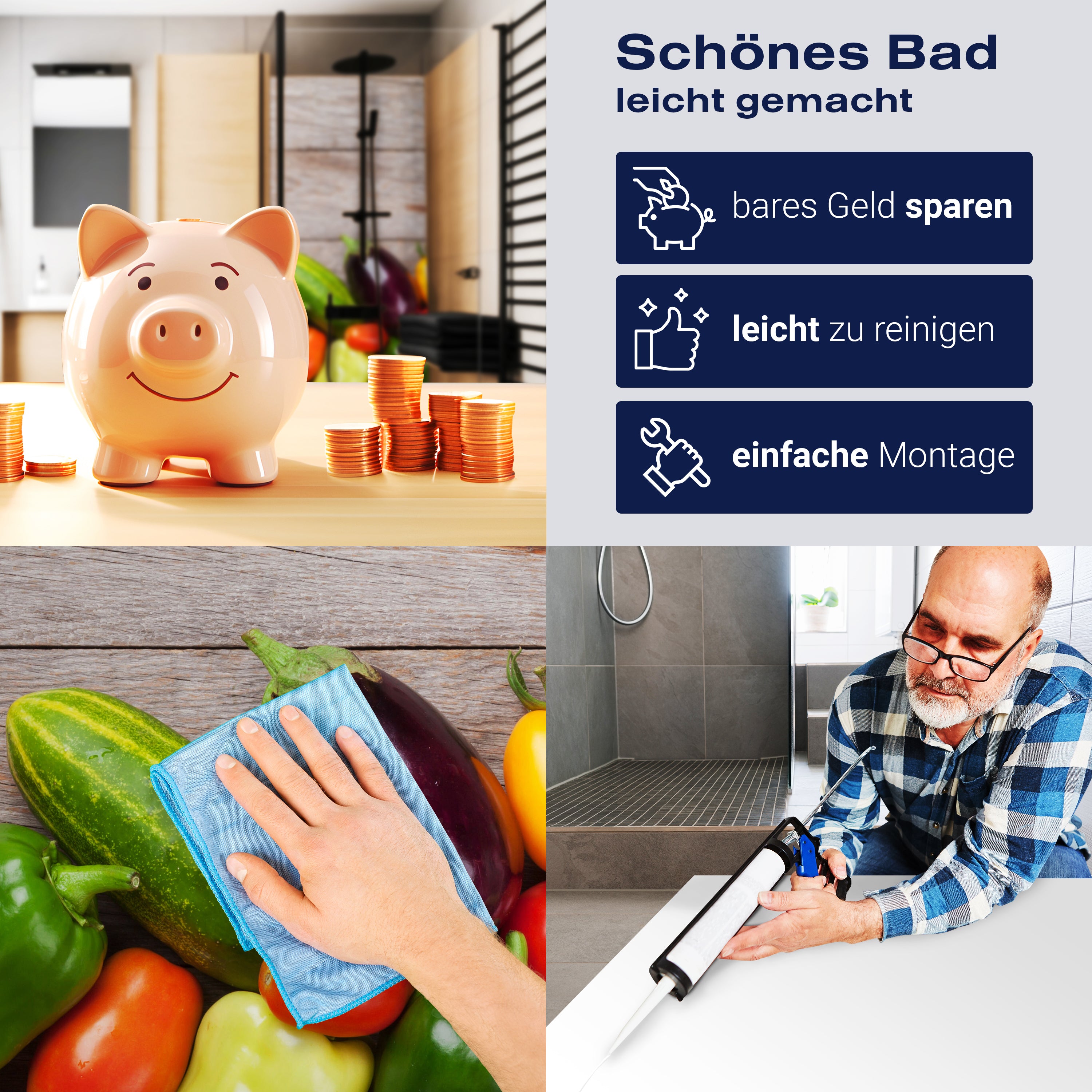Diese Materialien bieten im Vergleich zu traditionellen Fliesen mehrere Vorteile. Sie haben eine fugenlose Oberfläche, was bedeutet, dass sie weniger anfällig für Schimmelbildung und leichter zu reinigen sind, da sich Schmutz und Kalk nicht in Fugen festsetzen können. Darüber hinaus ermöglichen sie eine schnelle und einfache Renovierung, da sie direkt über bestehenden Fliesen montiert werden können, was Zeit und Kosten spart