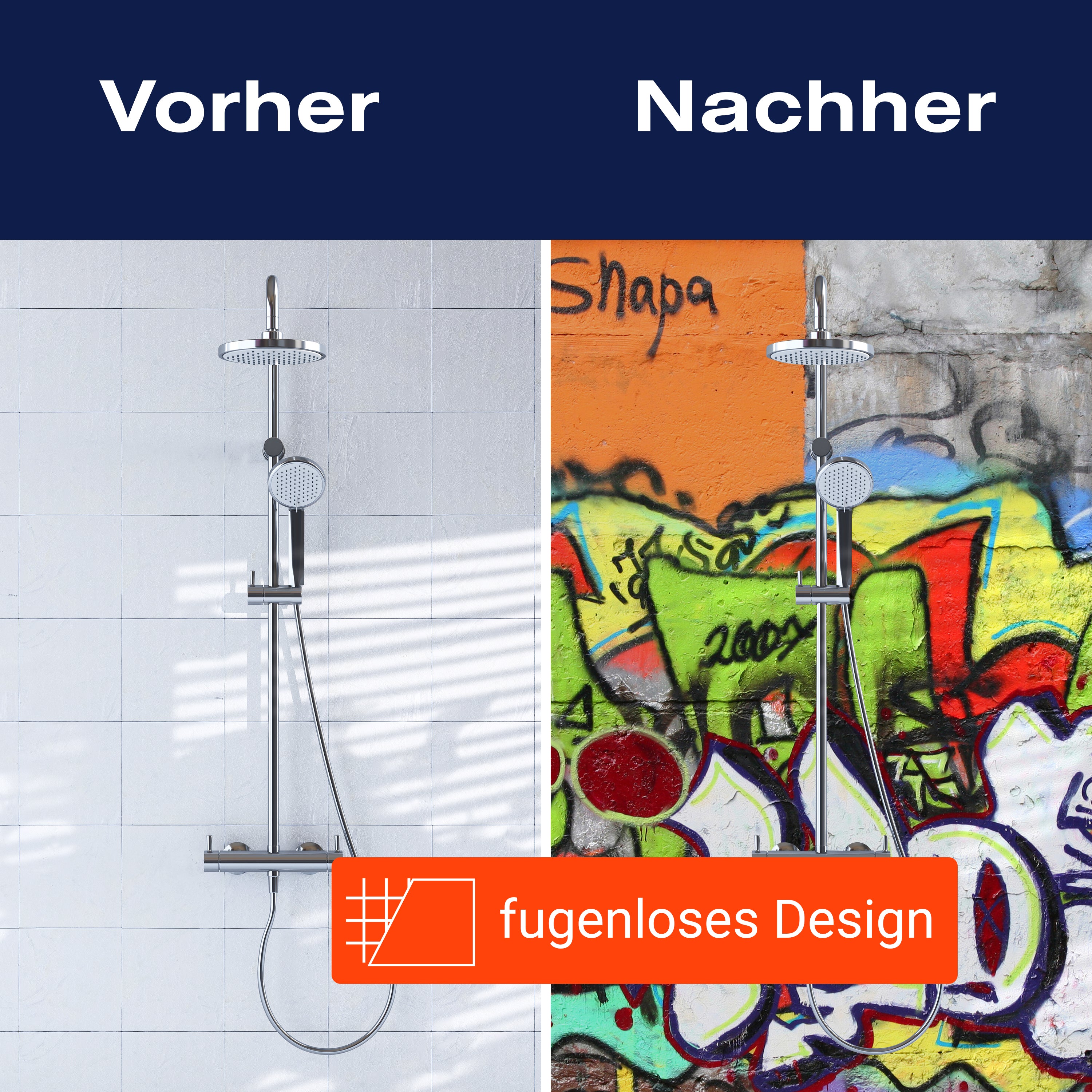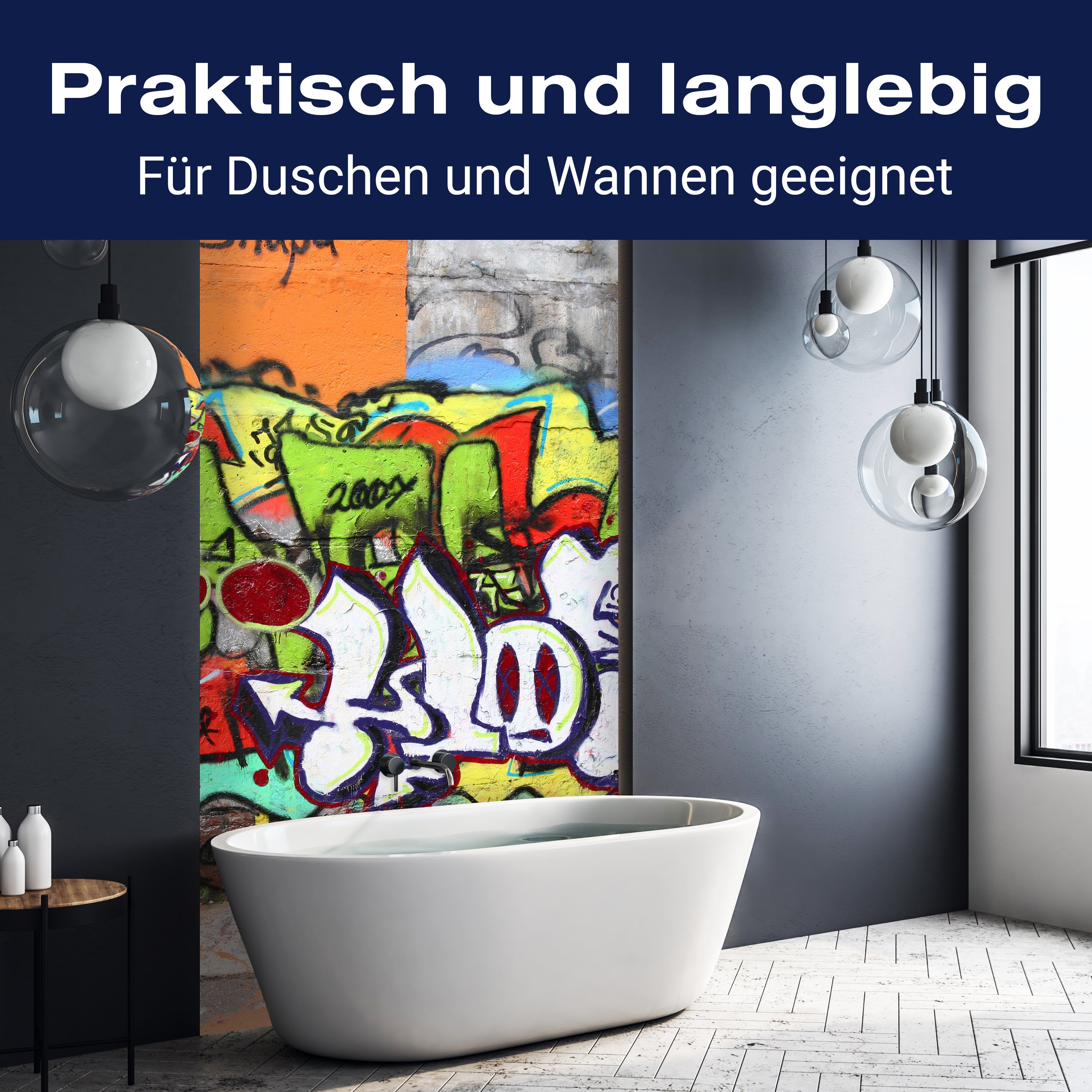 Bist du es leid, auf die langweiligen, schwer zu reinigende Fliesen in deiner Dusche zu schauen? Stell dir vor, wie dein Bad mit einer stilvollen, modernen Rückwand zum Leben erwacht! Unsere Duschwand 'Graffiti 2' ist nicht nur ein optisches Highlight, sondern auch praktisch und pflegeleicht.