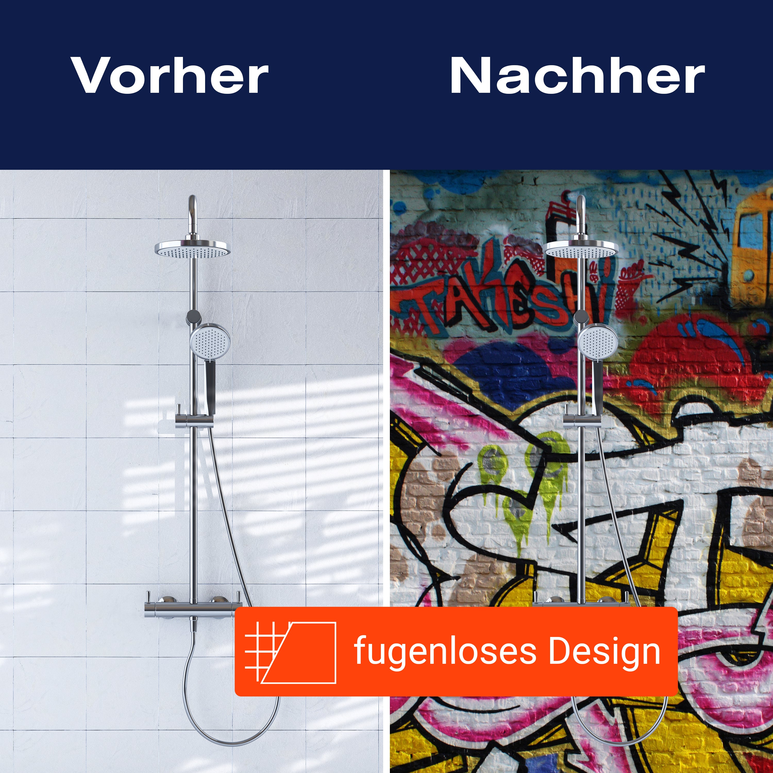 Bist du es leid, auf die langweiligen, schwer zu reinigende Fliesen in deiner Dusche zu schauen? Stell dir vor, wie dein Bad mit einer stilvollen, modernen Rückwand zum Leben erwacht! Unsere Duschwand 'Graffiti Poet' ist nicht nur ein optisches Highlight, sondern auch praktisch und pflegeleicht.