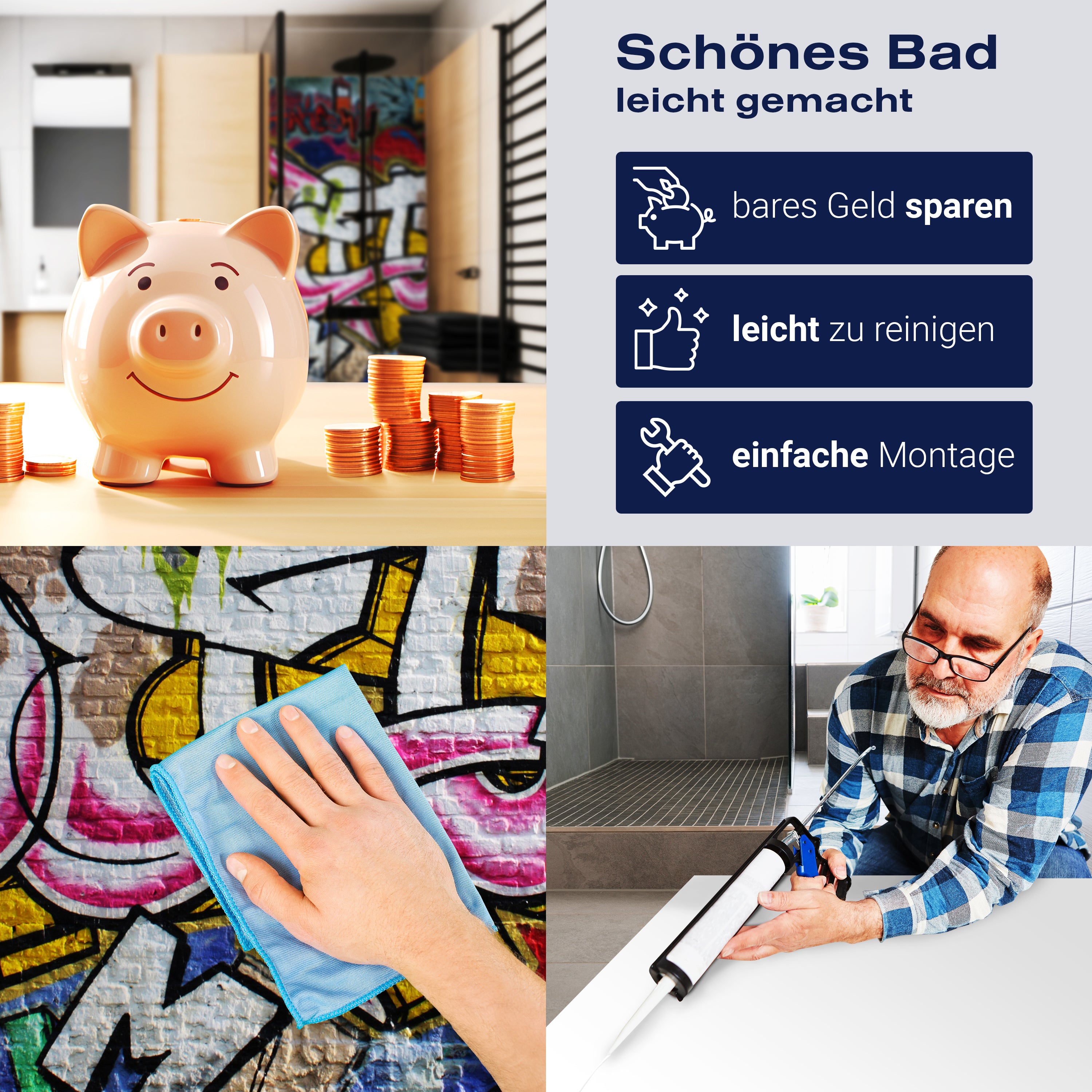 ür eine optimale Langlebigkeit ist es wichtig, die Duschrückwände richtig zu pflegen. Sie sollten regelmäßig mit einem weichen Tuch und milden Reinigungsmitteln gereinigt werden, um Kalk- und Seifenrückstände zu entfernen. Scheuermittel oder aggressive Chemikalien sollten vermieden werden, da diese die Oberfläche beschädigen können. Die fugenlose Oberfläche vereinfacht die Reinigung erheblich und trägt dazu bei, dass die Wandverkleidung hygienisch und ansprechend bleibt