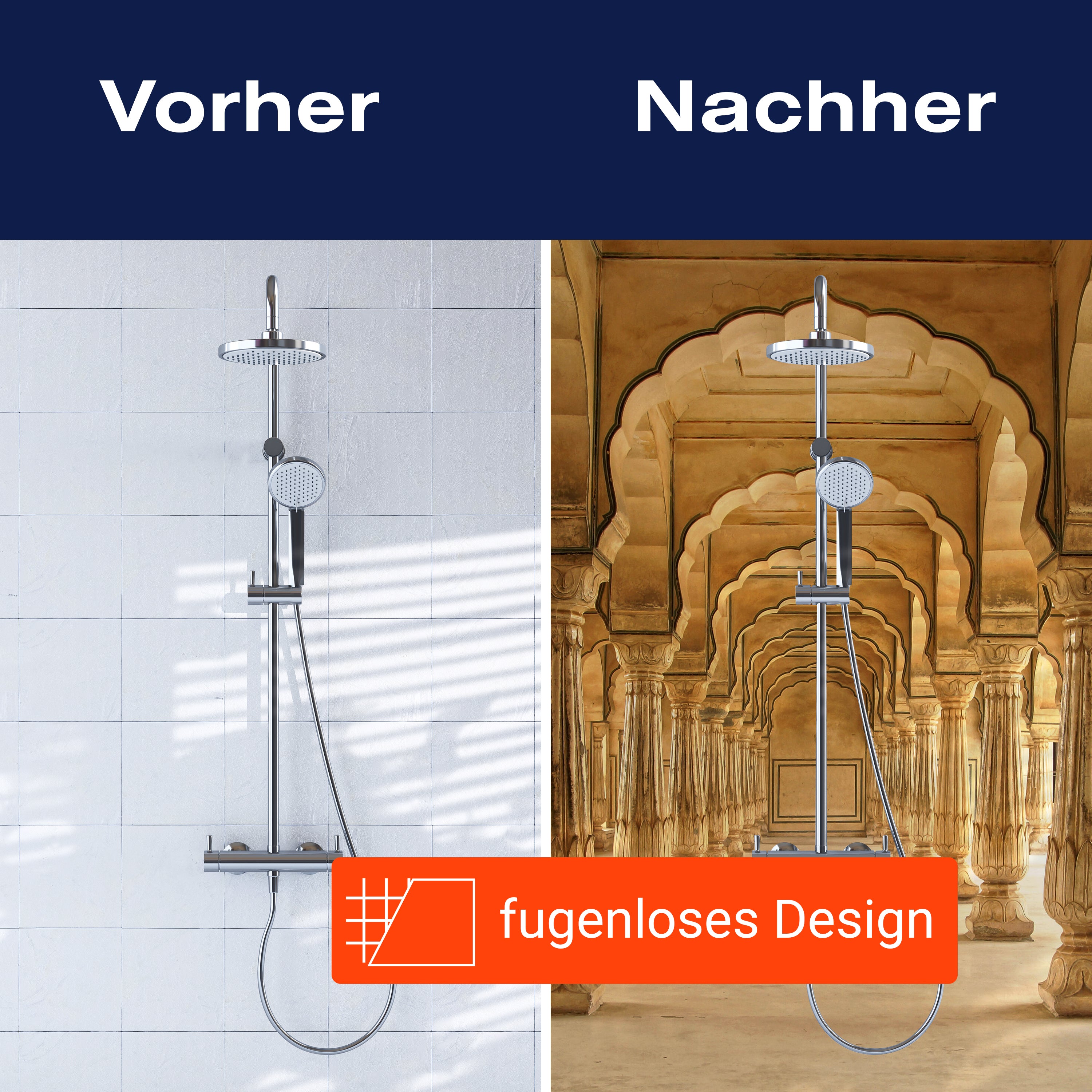 Bist du es leid, auf die langweiligen, schwer zu reinigende Fliesen in deiner Dusche zu schauen? Stell dir vor, wie dein Bad mit einer stilvollen, modernen Rückwand zum Leben erwacht! Unsere Duschwand 'Jaipur Indien' ist nicht nur ein optisches Highlight, sondern auch praktisch und pflegeleicht.