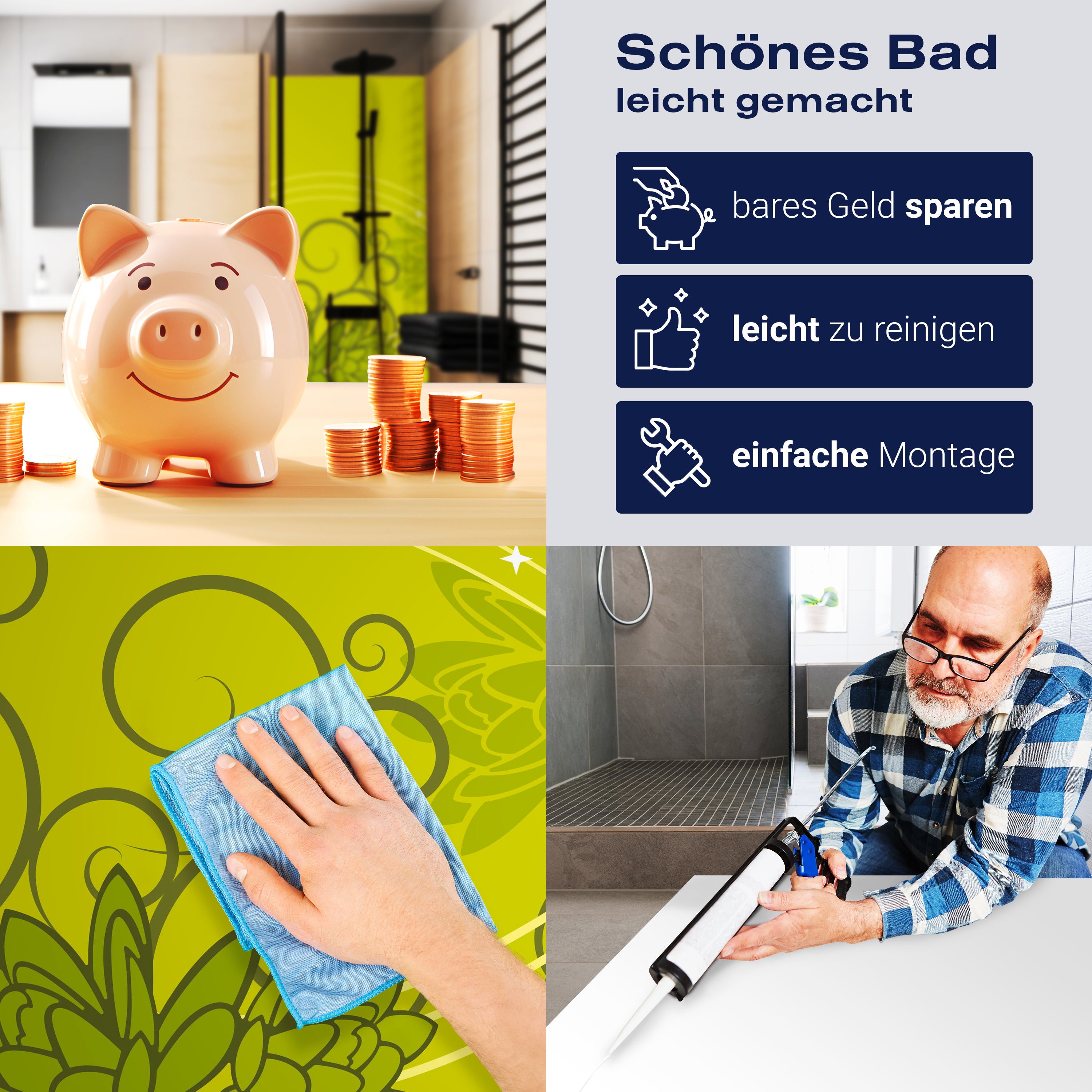 Diese Materialien bieten im Vergleich zu traditionellen Fliesen mehrere Vorteile. Sie haben eine fugenlose Oberfläche, was bedeutet, dass sie weniger anfällig für Schimmelbildung und leichter zu reinigen sind, da sich Schmutz und Kalk nicht in Fugen festsetzen können. Darüber hinaus ermöglichen sie eine schnelle und einfache Renovierung, da sie direkt über bestehenden Fliesen montiert werden können, was Zeit und Kosten spart