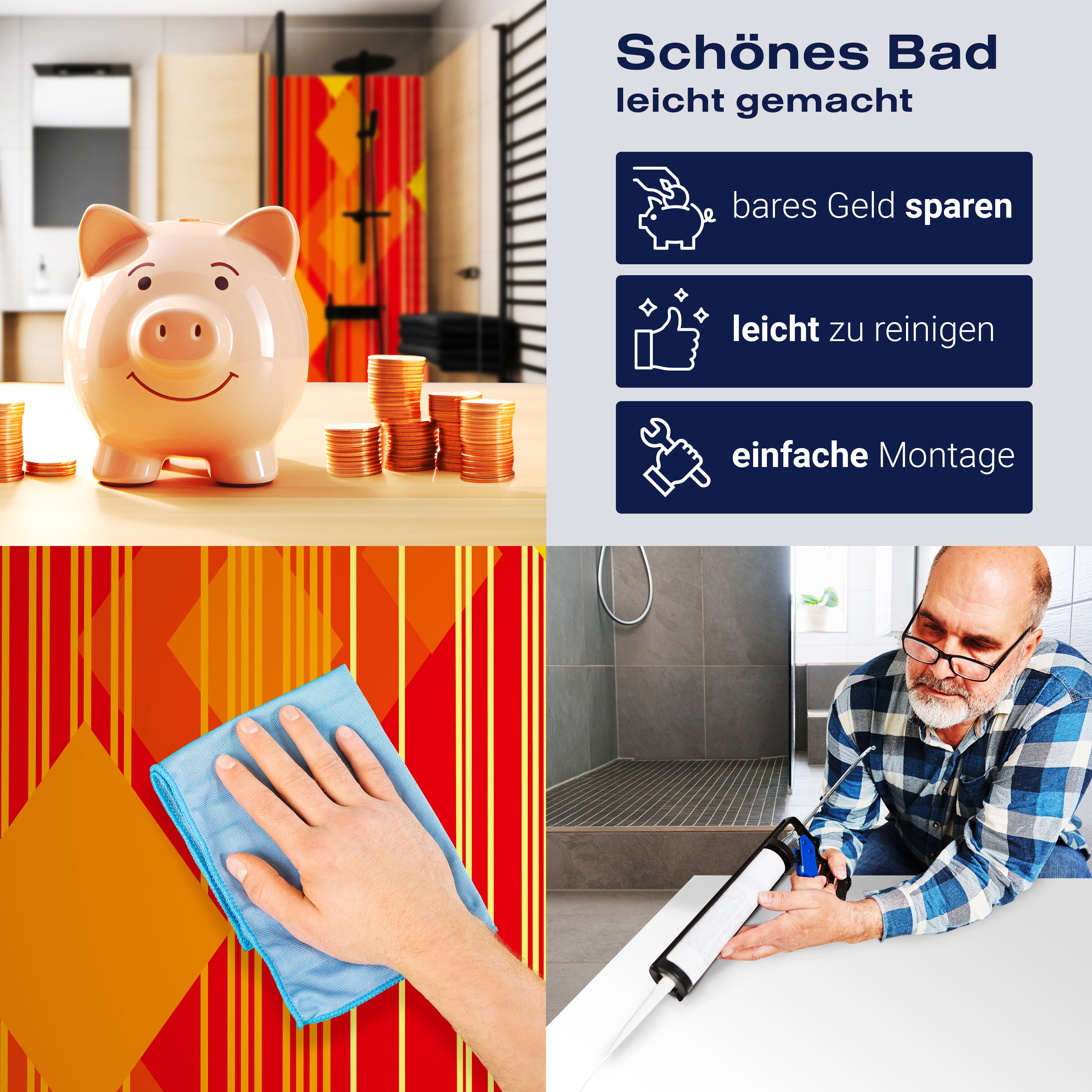 Diese Materialien bieten im Vergleich zu traditionellen Fliesen mehrere Vorteile. Sie haben eine fugenlose Oberfläche, was bedeutet, dass sie weniger anfällig für Schimmelbildung und leichter zu reinigen sind, da sich Schmutz und Kalk nicht in Fugen festsetzen können. Darüber hinaus ermöglichen sie eine schnelle und einfache Renovierung, da sie direkt über bestehenden Fliesen montiert werden können, was Zeit und Kosten spart