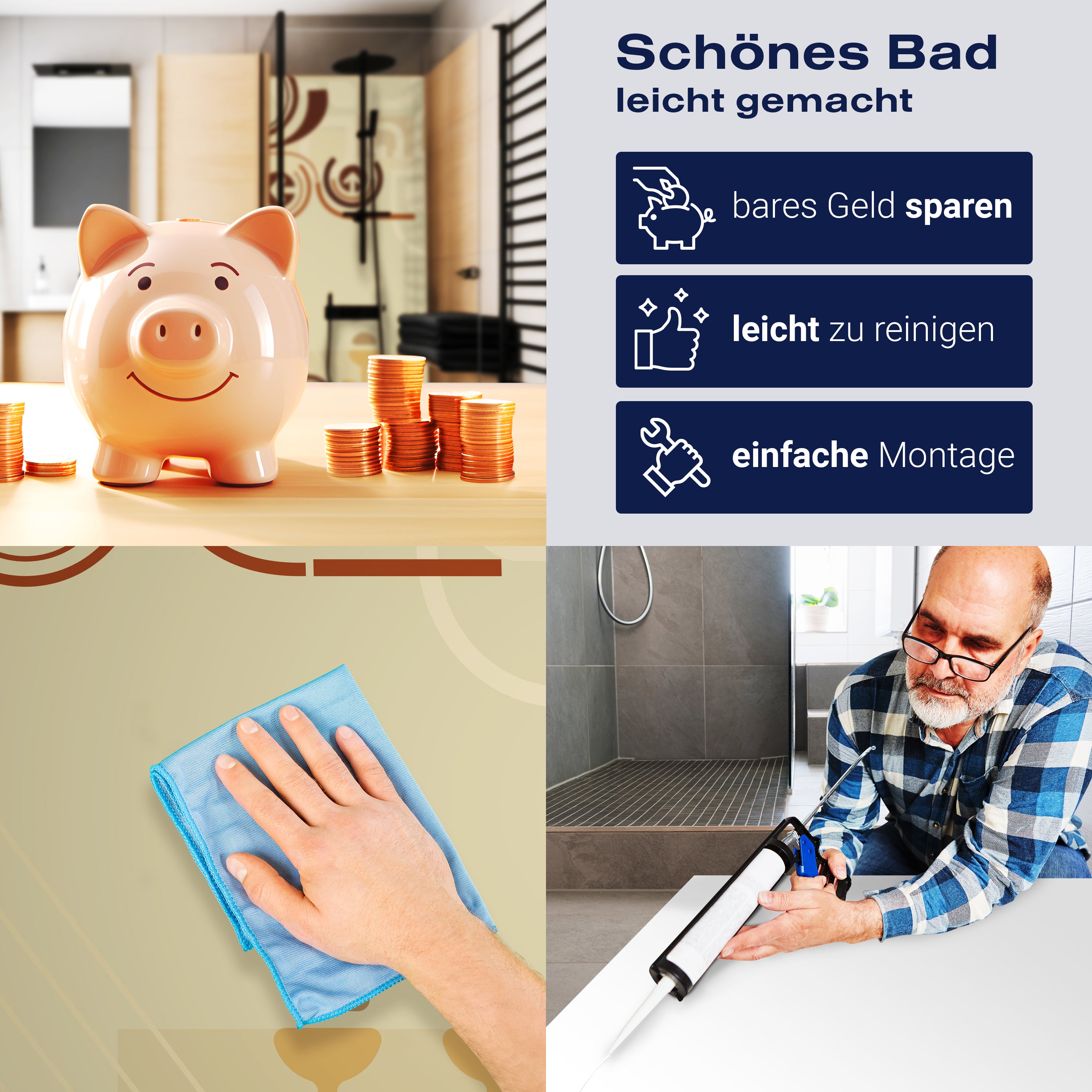 ür eine optimale Langlebigkeit ist es wichtig, die Duschrückwände richtig zu pflegen. Sie sollten regelmäßig mit einem weichen Tuch und milden Reinigungsmitteln gereinigt werden, um Kalk- und Seifenrückstände zu entfernen. Scheuermittel oder aggressive Chemikalien sollten vermieden werden, da diese die Oberfläche beschädigen können. Die fugenlose Oberfläche vereinfacht die Reinigung erheblich und trägt dazu bei, dass die Wandverkleidung hygienisch und ansprechend bleibt
