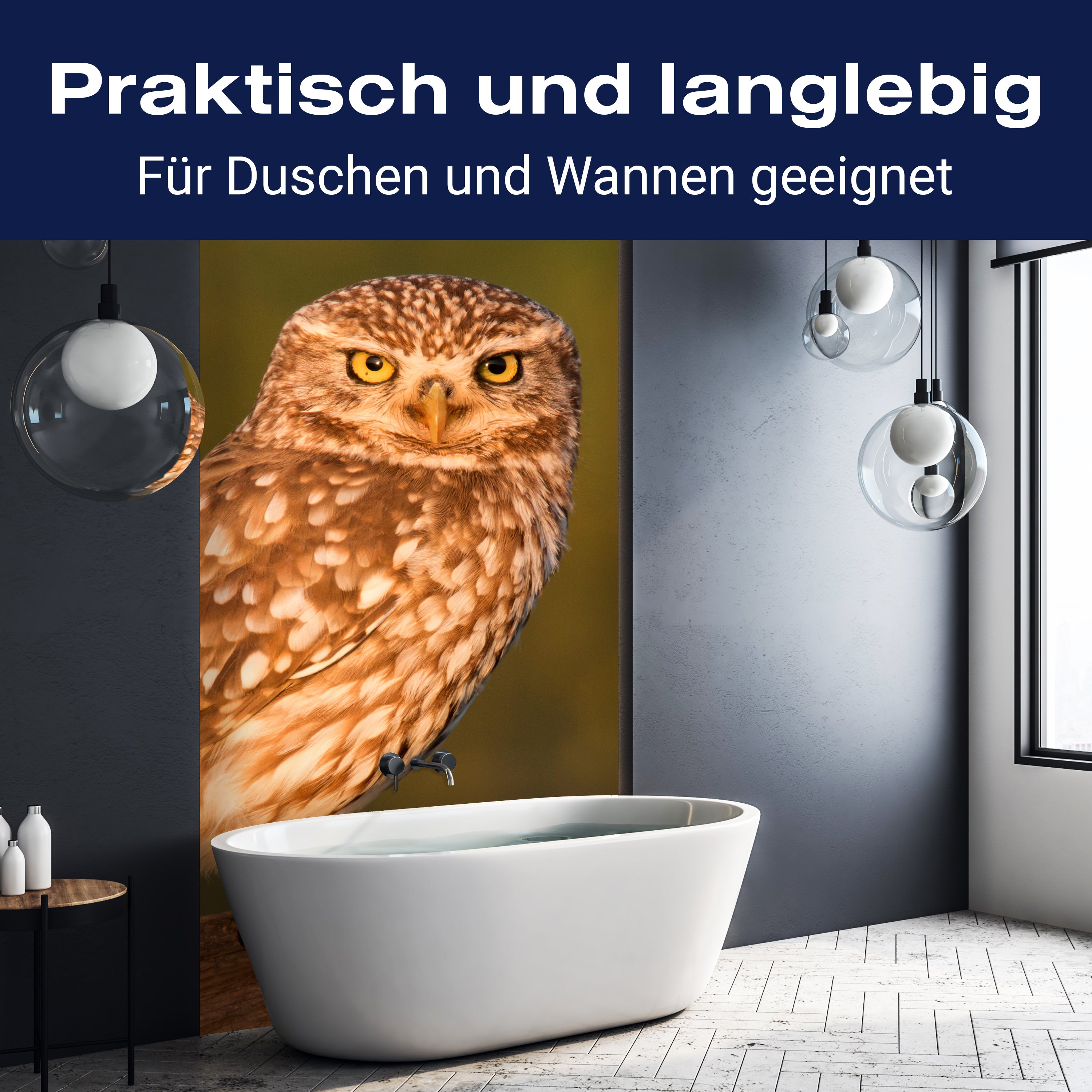 Bist du es leid, auf die langweiligen, schwer zu reinigende Fliesen in deiner Dusche zu schauen? Stell dir vor, wie dein Bad mit einer stilvollen, modernen Rückwand zum Leben erwacht! Unsere Duschwand 'Kleine Eule, Baumstamm' ist nicht nur ein optisches Highlight, sondern auch praktisch und pflegeleicht.
