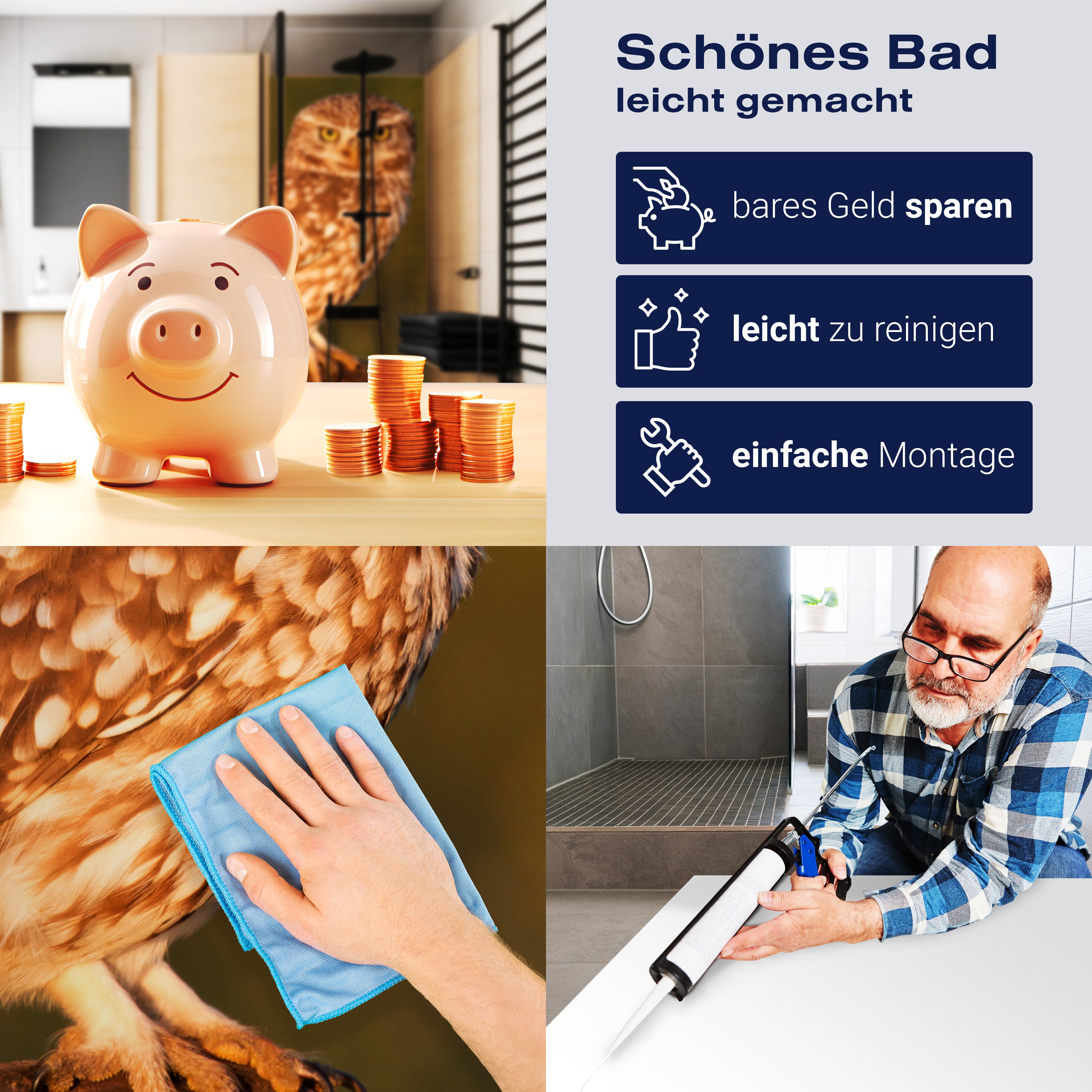 Diese Materialien bieten im Vergleich zu traditionellen Fliesen mehrere Vorteile. Sie haben eine fugenlose Oberfläche, was bedeutet, dass sie weniger anfällig für Schimmelbildung und leichter zu reinigen sind, da sich Schmutz und Kalk nicht in Fugen festsetzen können. Darüber hinaus ermöglichen sie eine schnelle und einfache Renovierung, da sie direkt über bestehenden Fliesen montiert werden können, was Zeit und Kosten spart