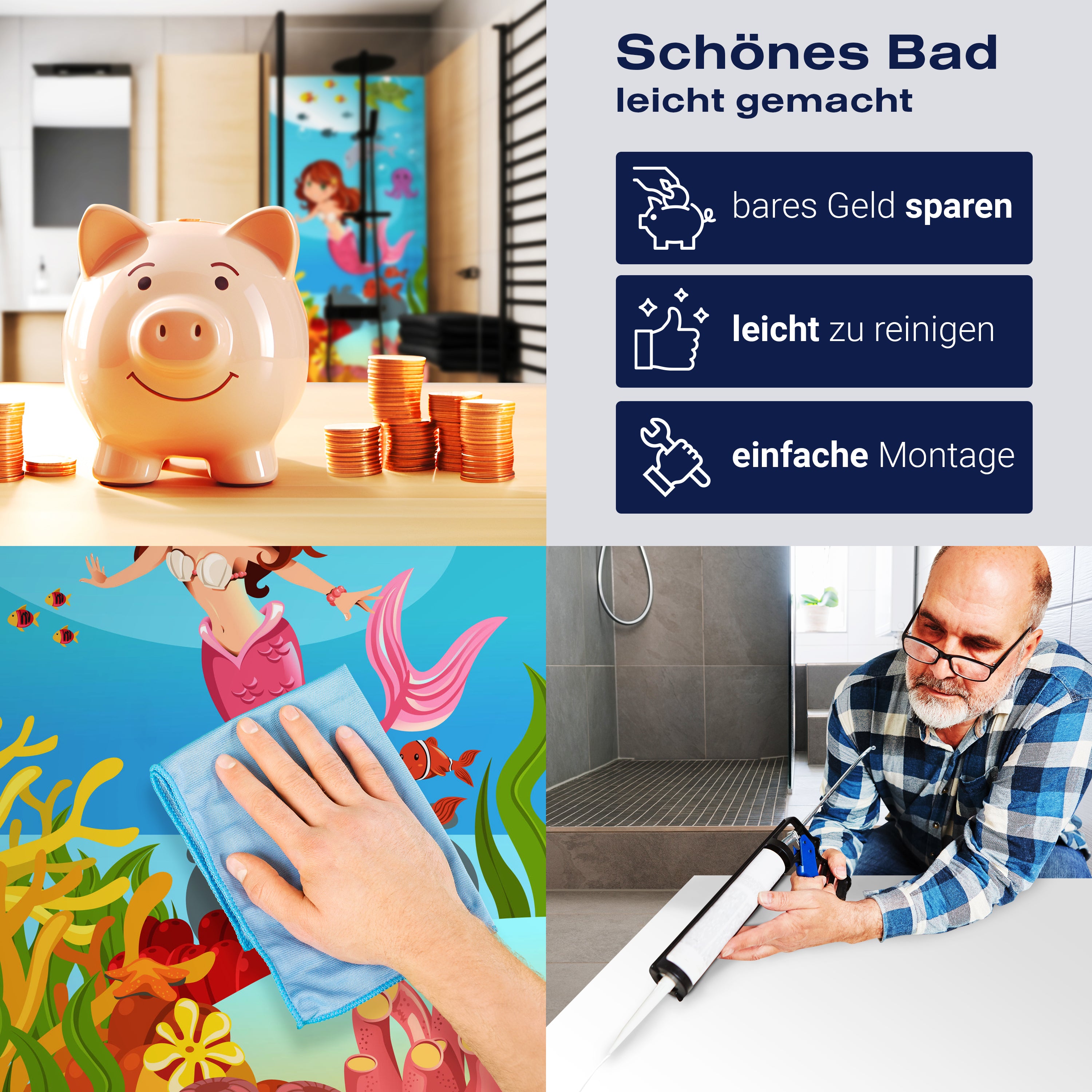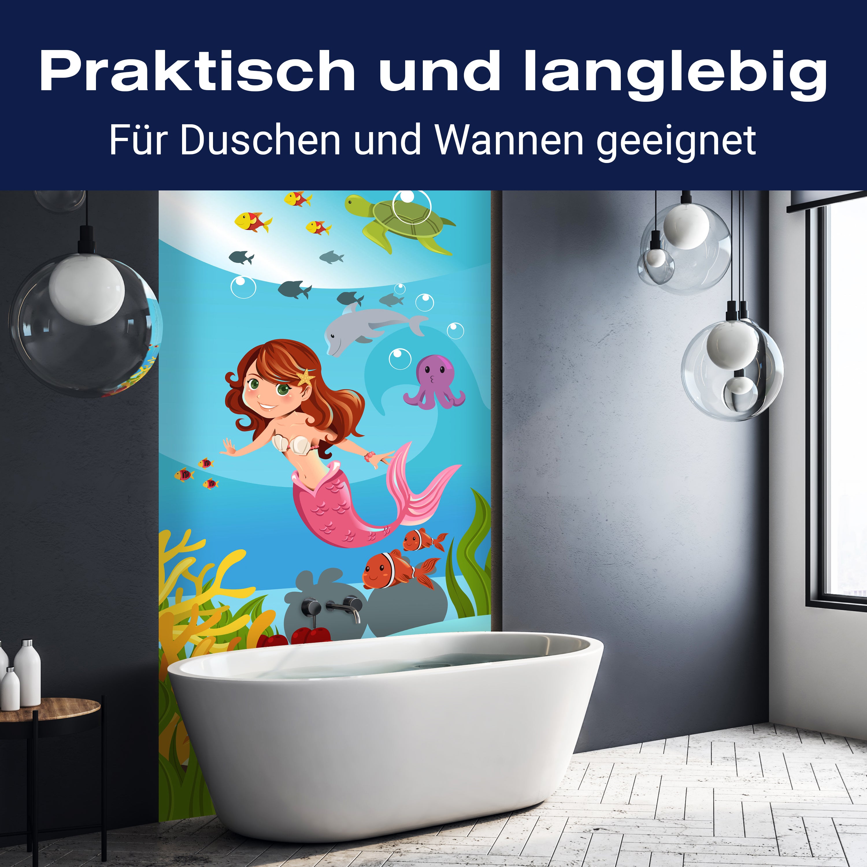 Bist du es leid, auf die langweiligen, schwer zu reinigende Fliesen in deiner Dusche zu schauen? Stell dir vor, wie dein Bad mit einer stilvollen, modernen Rückwand zum Leben erwacht! Unsere Duschwand 'kleine Meerjungfrau' ist nicht nur ein optisches Highlight, sondern auch praktisch und pflegeleicht.