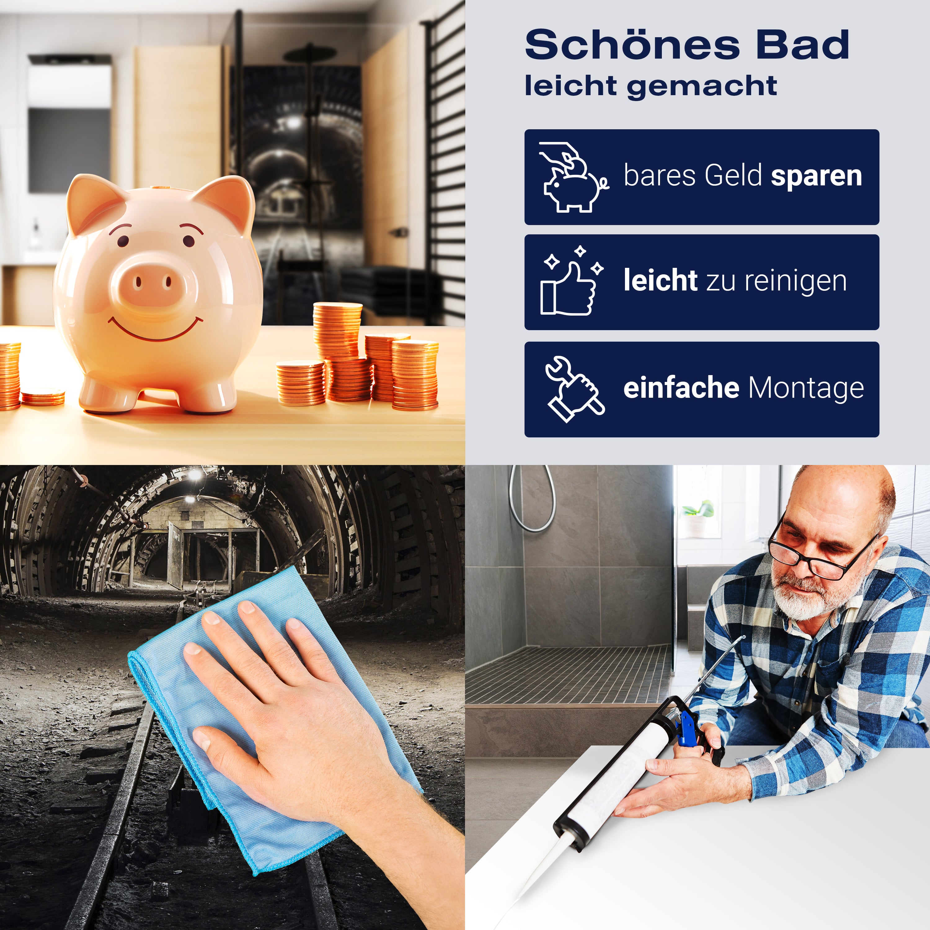 ür eine optimale Langlebigkeit ist es wichtig, die Duschrückwände richtig zu pflegen. Sie sollten regelmäßig mit einem weichen Tuch und milden Reinigungsmitteln gereinigt werden, um Kalk- und Seifenrückstände zu entfernen. Scheuermittel oder aggressive Chemikalien sollten vermieden werden, da diese die Oberfläche beschädigen können. Die fugenlose Oberfläche vereinfacht die Reinigung erheblich und trägt dazu bei, dass die Wandverkleidung hygienisch und ansprechend bleibt
