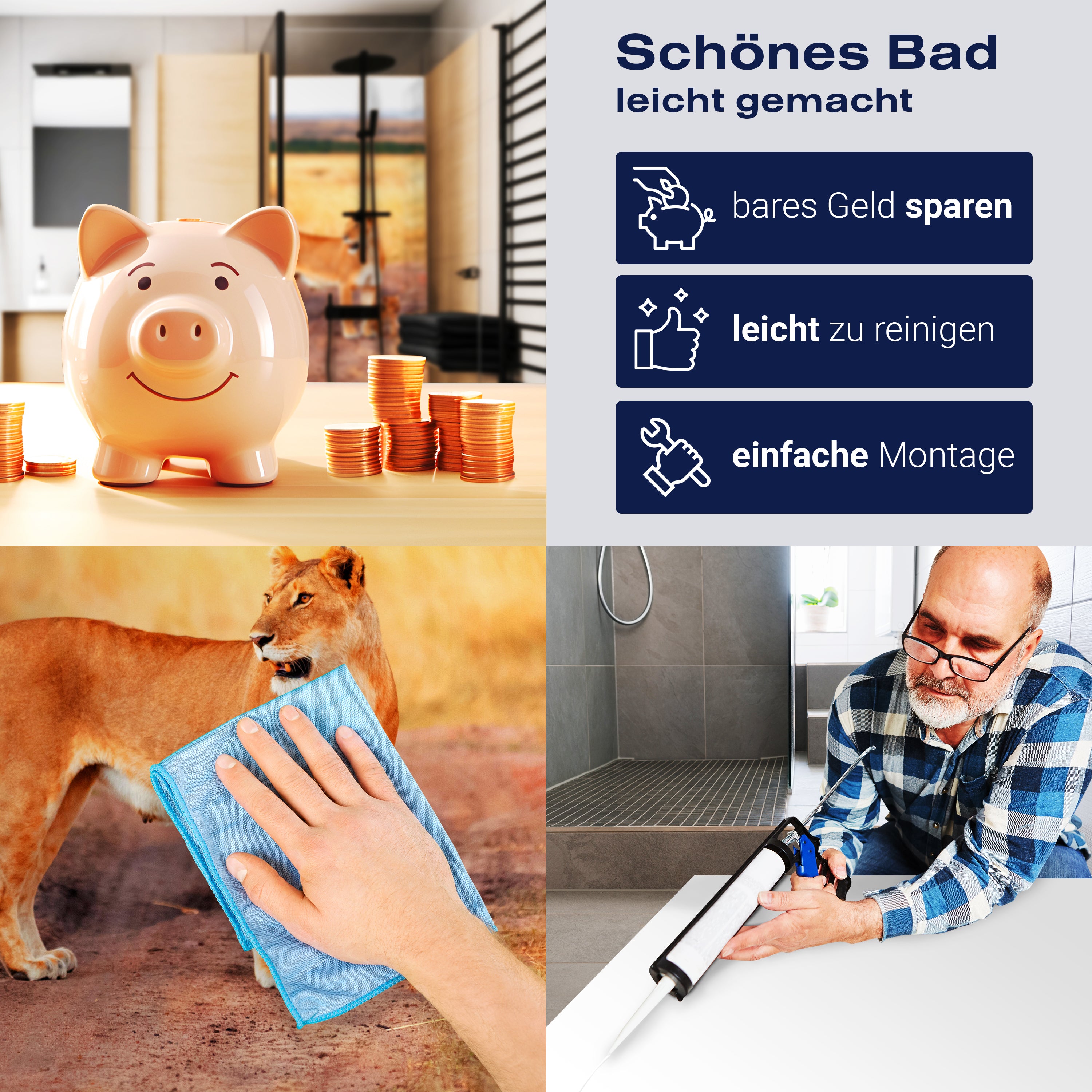 Diese Materialien bieten im Vergleich zu traditionellen Fliesen mehrere Vorteile. Sie haben eine fugenlose Oberfläche, was bedeutet, dass sie weniger anfällig für Schimmelbildung und leichter zu reinigen sind, da sich Schmutz und Kalk nicht in Fugen festsetzen können. Darüber hinaus ermöglichen sie eine schnelle und einfache Renovierung, da sie direkt über bestehenden Fliesen montiert werden können, was Zeit und Kosten spart