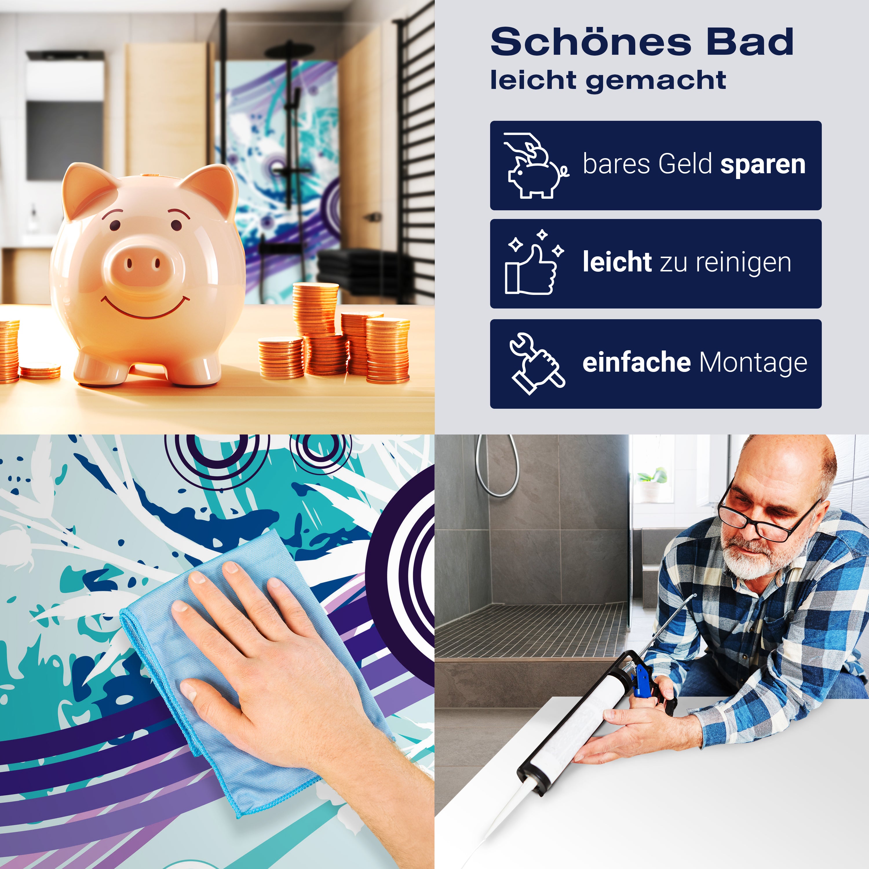 Die Reinigung Deiner Duschwand war noch nie so einfach. In einer Welt, in der Zeit ein kostbares Gut ist, verstehen wir, wie wichtig es ist, Reinigungsprozesse so effizient und mühelos wie möglich zu gestalten. Unsere Duschwände sind speziell dafür entworfen, Dein Leben leichter zu machen. Dank der glatten Oberfläche und der widerstandsfähigen Beschichtung lassen sich Spritzer und Flecken ohne großen Aufwand entfernen – ein schneller Wisch mit einem handelsüblichen Lappen, Spül- oder Wischtuch, und Deine Rückwand sieht aus wie neu.