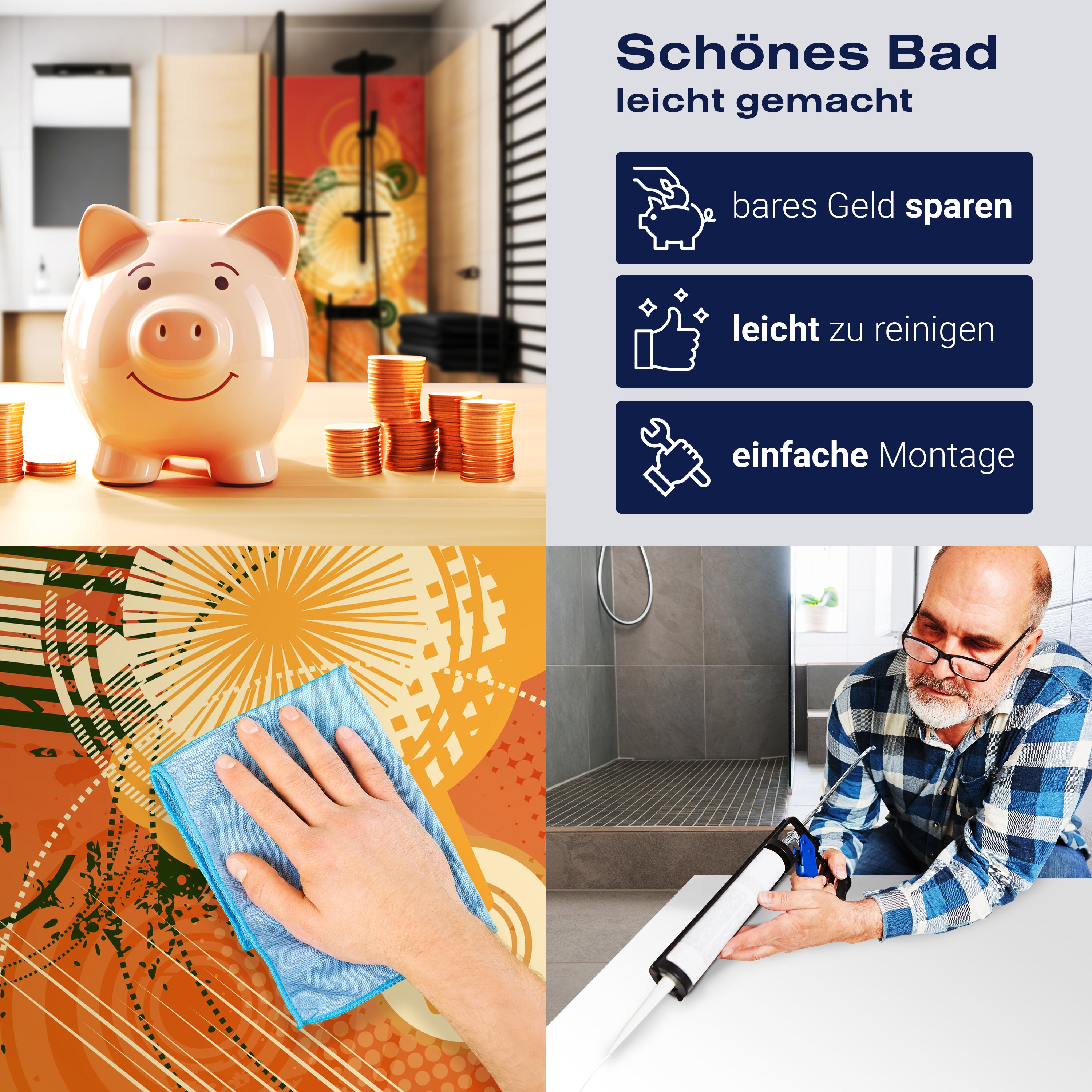 Diese Materialien bieten im Vergleich zu traditionellen Fliesen mehrere Vorteile. Sie haben eine fugenlose Oberfläche, was bedeutet, dass sie weniger anfällig für Schimmelbildung und leichter zu reinigen sind, da sich Schmutz und Kalk nicht in Fugen festsetzen können. Darüber hinaus ermöglichen sie eine schnelle und einfache Renovierung, da sie direkt über bestehenden Fliesen montiert werden können, was Zeit und Kosten spart