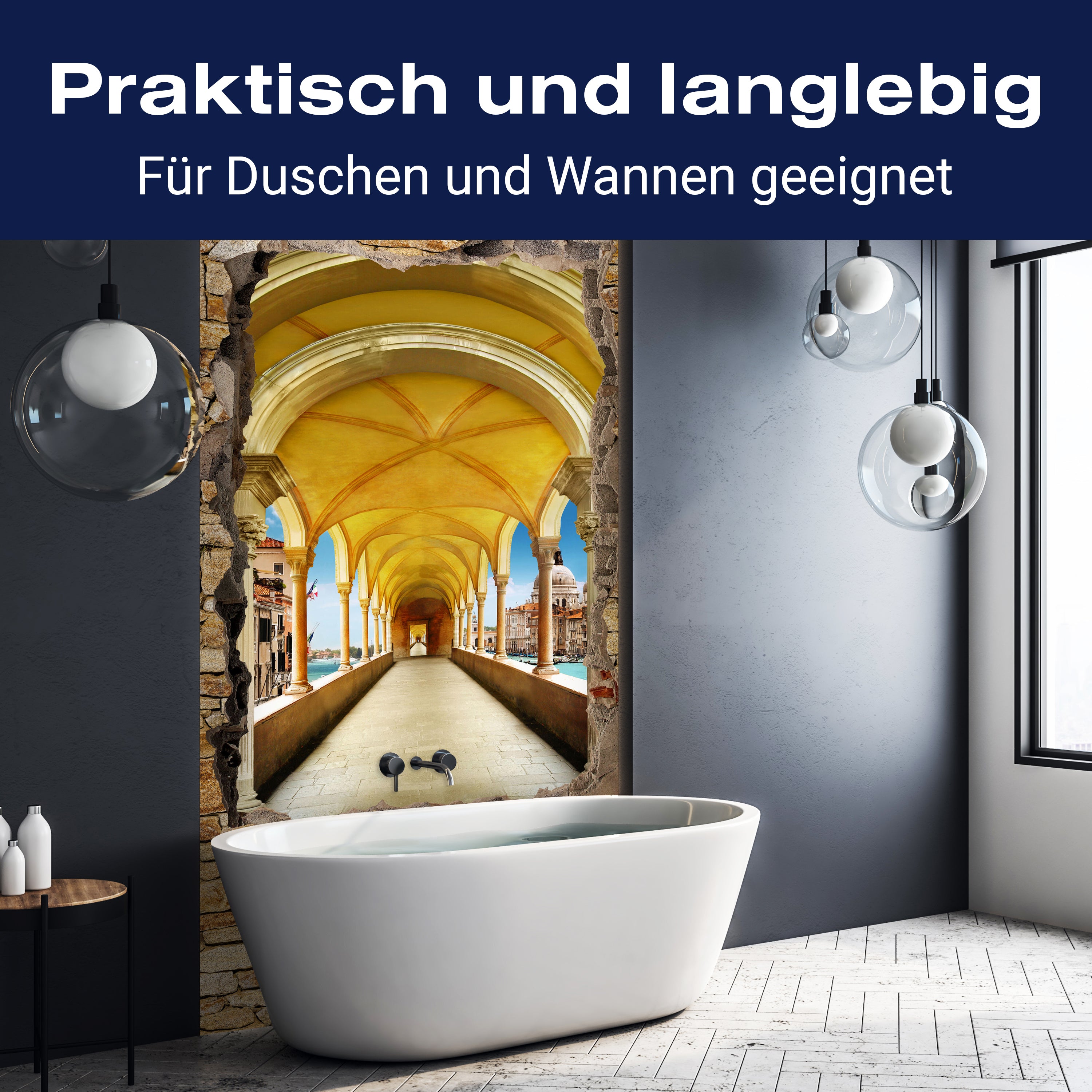 Bist du es leid, auf die langweiligen, schwer zu reinigende Fliesen in deiner Dusche zu schauen? Stell dir vor, wie dein Bad mit einer stilvollen, modernen Rückwand zum Leben erwacht! Unsere Duschwand 'Mauerloch mit Tunnel' ist nicht nur ein optisches Highlight, sondern auch praktisch und pflegeleicht.