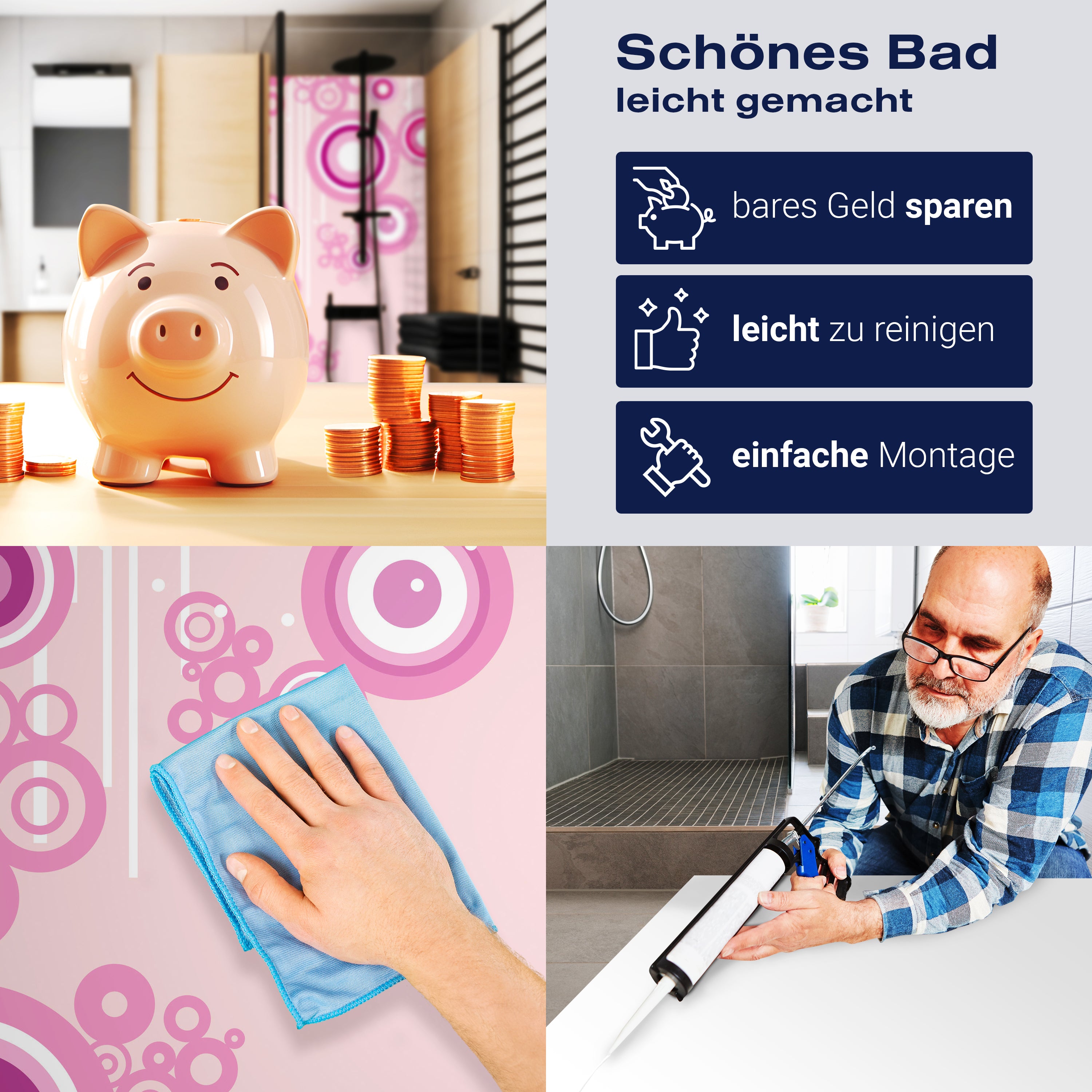 ür eine optimale Langlebigkeit ist es wichtig, die Duschrückwände richtig zu pflegen. Sie sollten regelmäßig mit einem weichen Tuch und milden Reinigungsmitteln gereinigt werden, um Kalk- und Seifenrückstände zu entfernen. Scheuermittel oder aggressive Chemikalien sollten vermieden werden, da diese die Oberfläche beschädigen können. Die fugenlose Oberfläche vereinfacht die Reinigung erheblich und trägt dazu bei, dass die Wandverkleidung hygienisch und ansprechend bleibt