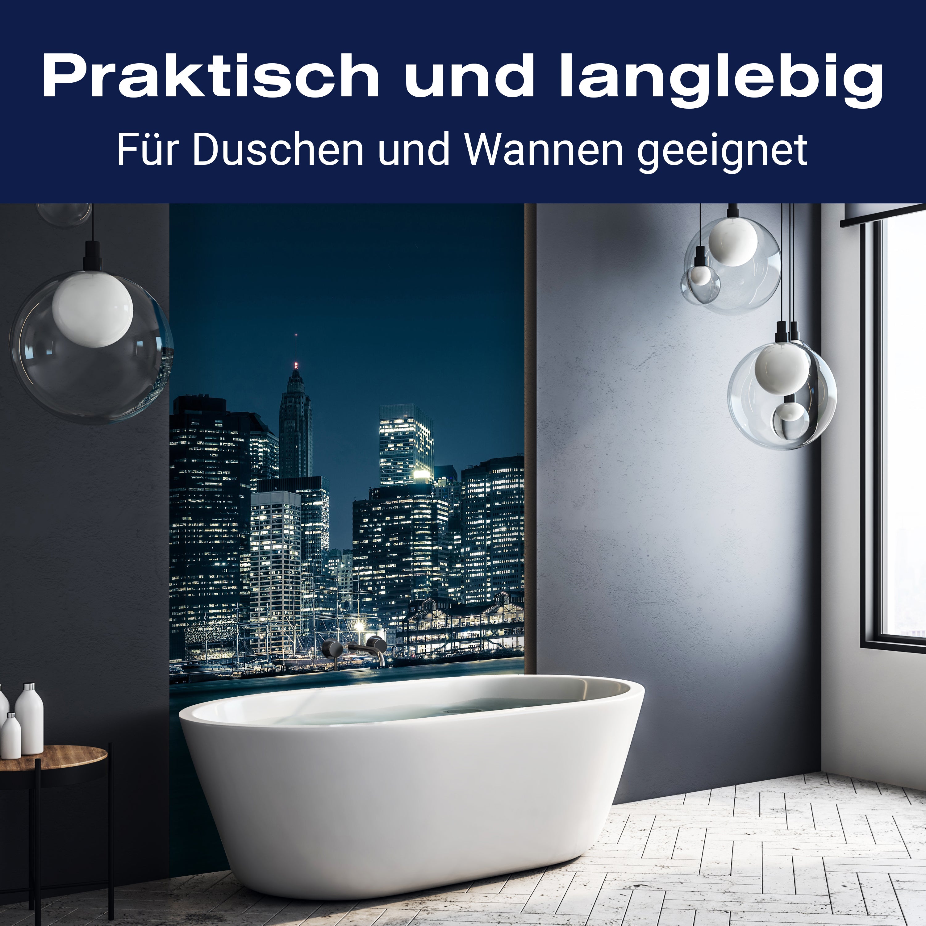 Vergiss die Tage, an denen Spritzer und Flecken deine Dusche ruiniert haben. Mit der Duschrückwand 'New York City' gehören solche Sorgen der Vergangenheit an. Das hochwertige Material sorgt dafür, dass deine Dusche gegen Wasser und andere alltägliche Missgeschicke resistent ist. Ein einfacher Wisch, und sie sieht aus wie neu – ohne den Einsatz von aggressiven Reinigungsmitteln.