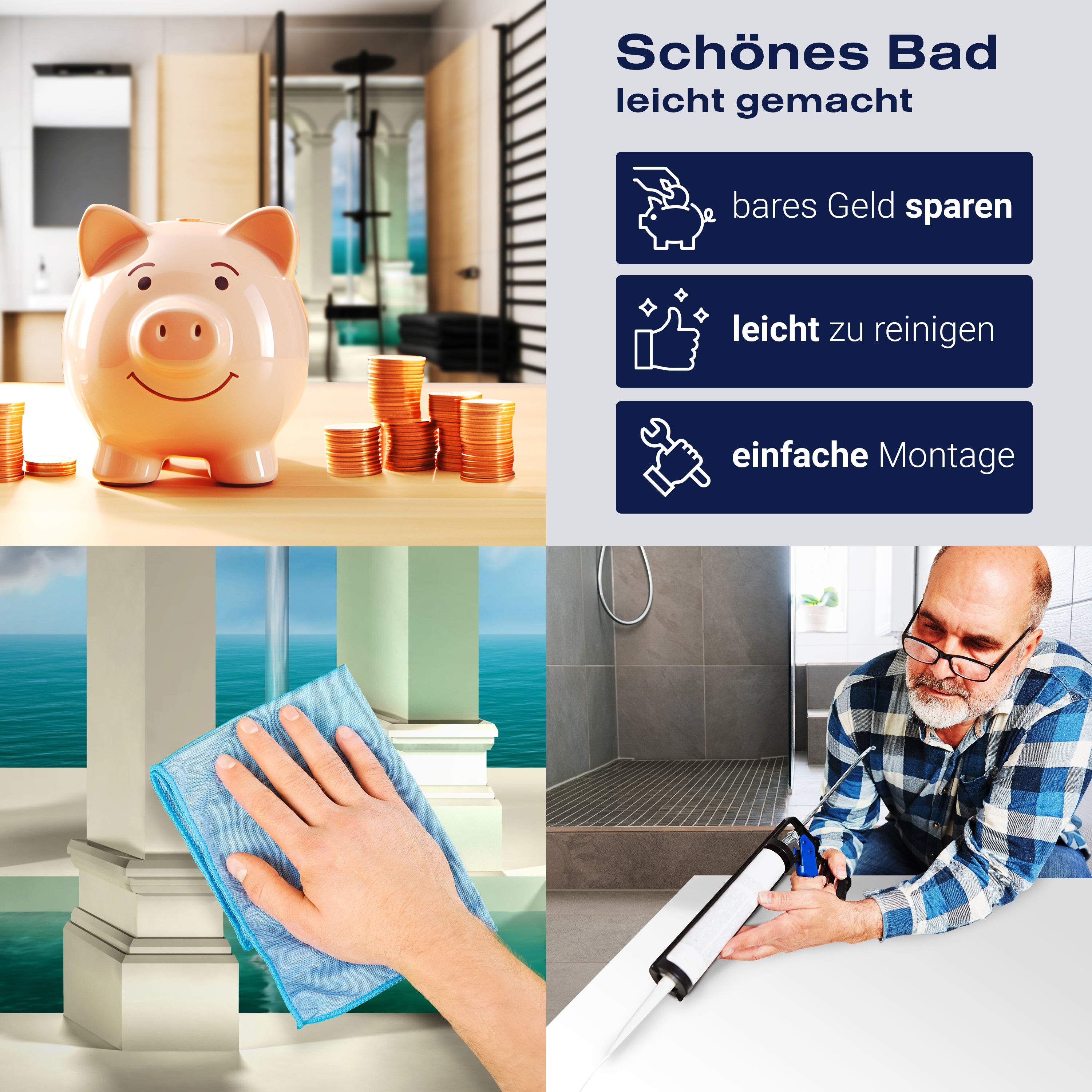 ür eine optimale Langlebigkeit ist es wichtig, die Duschrückwände richtig zu pflegen. Sie sollten regelmäßig mit einem weichen Tuch und milden Reinigungsmitteln gereinigt werden, um Kalk- und Seifenrückstände zu entfernen. Scheuermittel oder aggressive Chemikalien sollten vermieden werden, da diese die Oberfläche beschädigen können. Die fugenlose Oberfläche vereinfacht die Reinigung erheblich und trägt dazu bei, dass die Wandverkleidung hygienisch und ansprechend bleibt