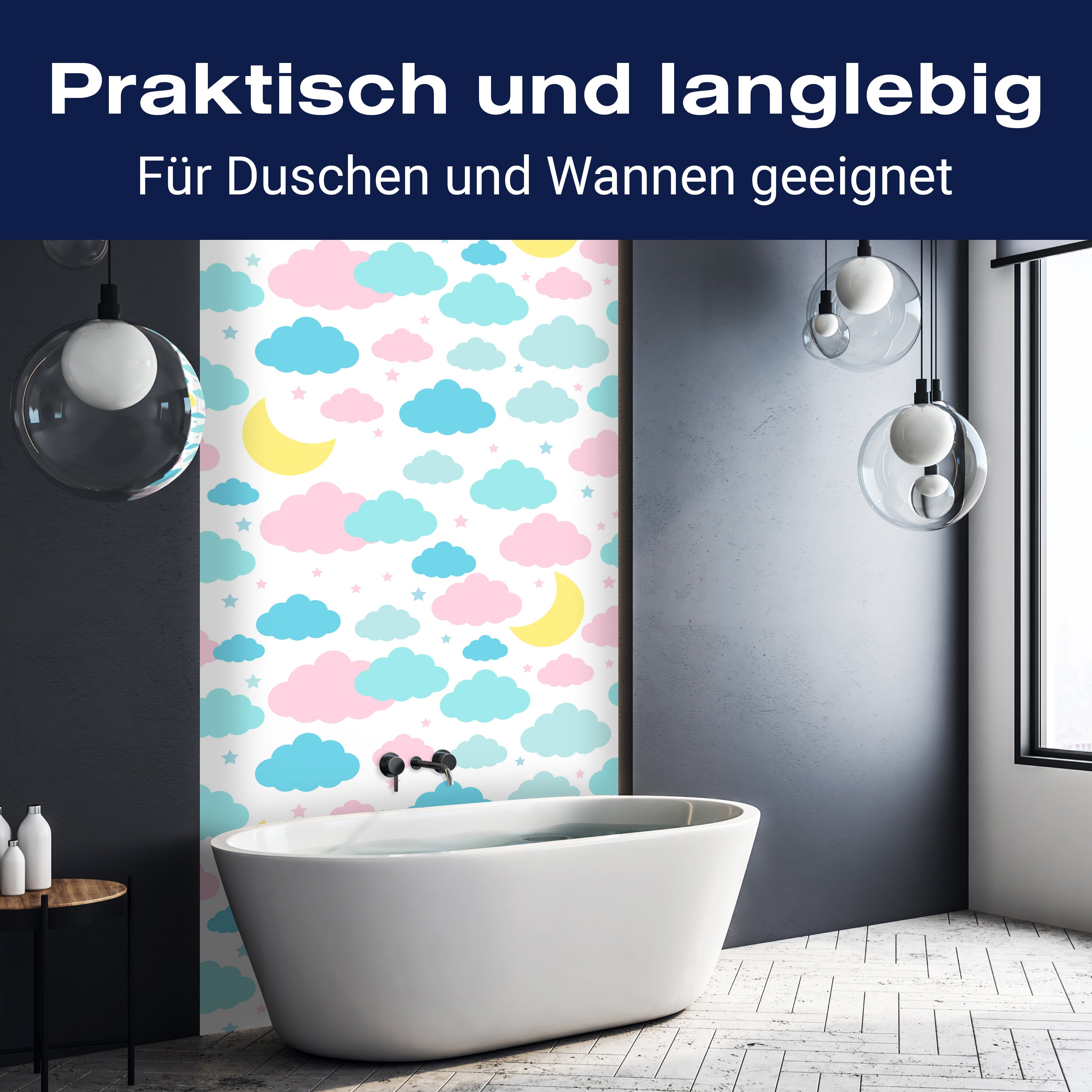 Bist du es leid, auf die langweiligen, schwer zu reinigende Fliesen in deiner Dusche zu schauen? Stell dir vor, wie dein Bad mit einer stilvollen, modernen Rückwand zum Leben erwacht! Unsere Duschwand 'Pastellfarbene Nacht' ist nicht nur ein optisches Highlight, sondern auch praktisch und pflegeleicht.