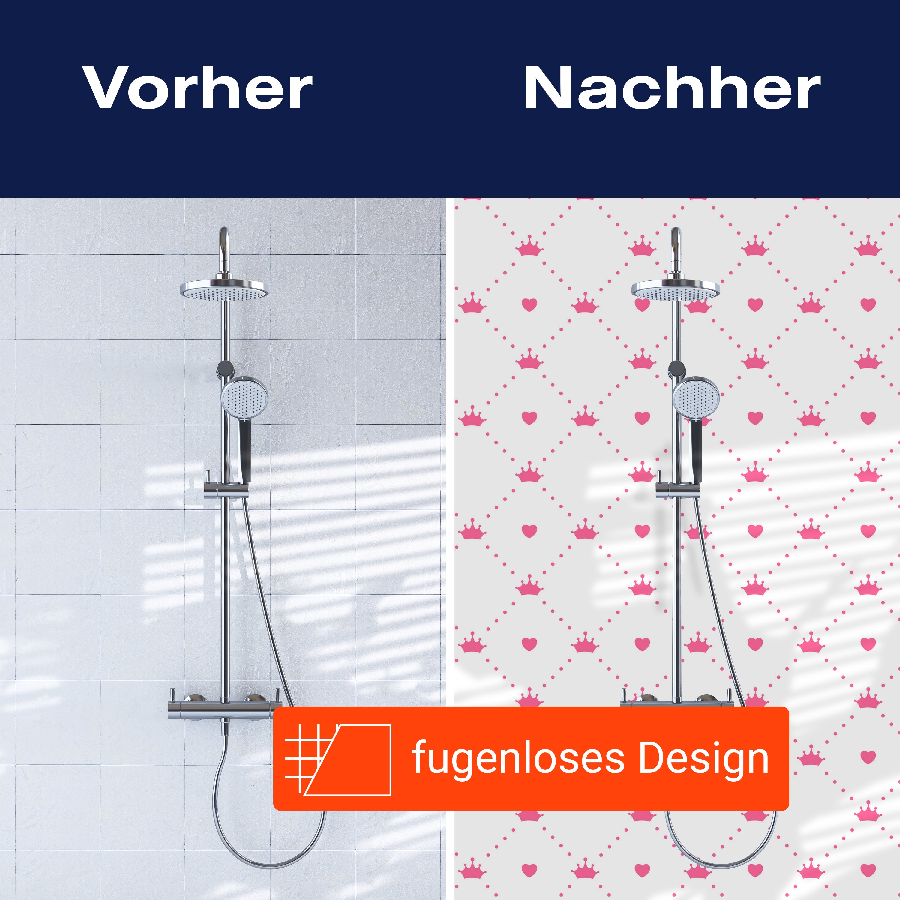 Bist du es leid, auf die langweiligen, schwer zu reinigende Fliesen in deiner Dusche zu schauen? Stell dir vor, wie dein Bad mit einer stilvollen, modernen Rückwand zum Leben erwacht! Unsere Duschwand 'Prinzessin - Herz - Krone' ist nicht nur ein optisches Highlight, sondern auch praktisch und pflegeleicht.