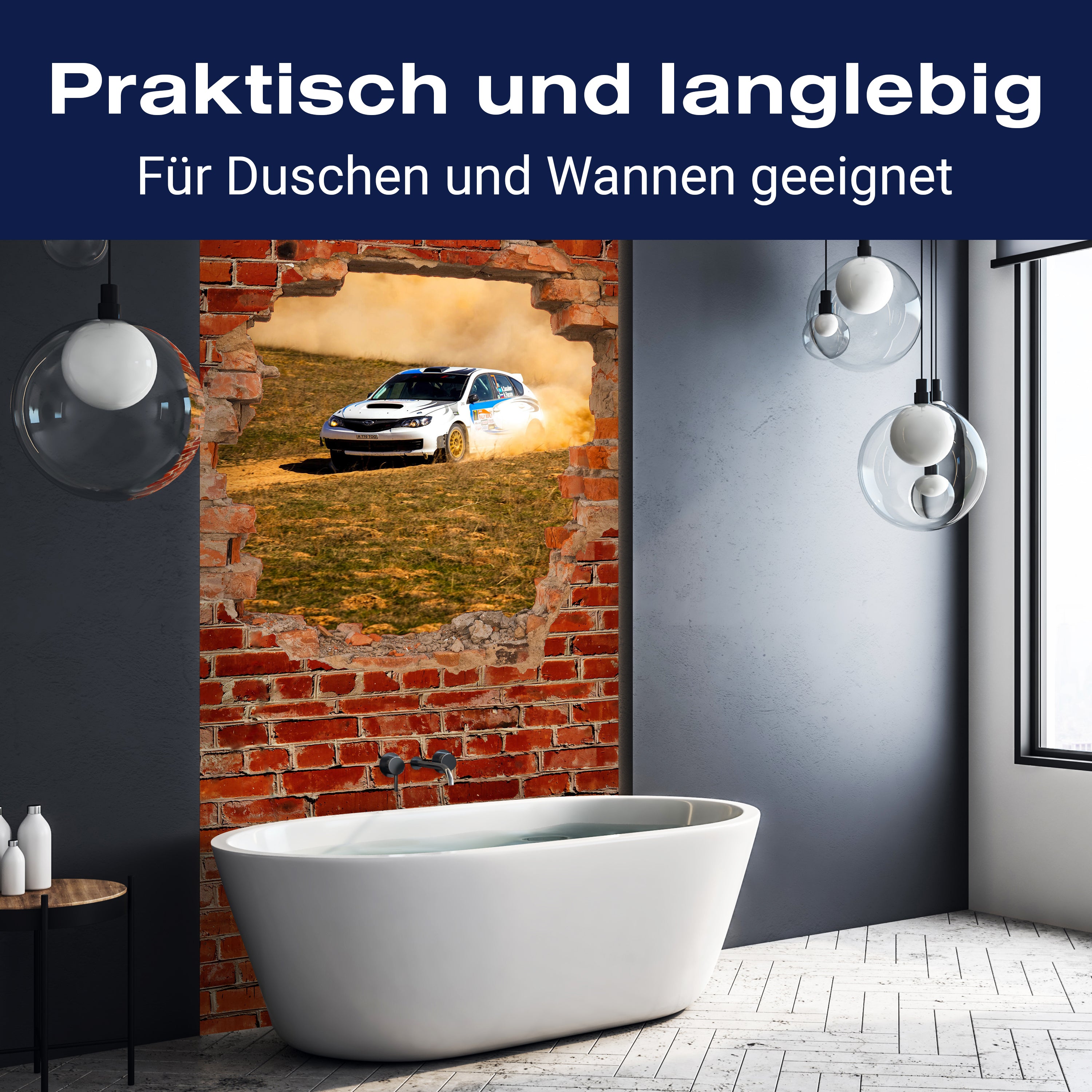 Bist du es leid, auf die langweiligen, schwer zu reinigende Fliesen in deiner Dusche zu schauen? Stell dir vor, wie dein Bad mit einer stilvollen, modernen Rückwand zum Leben erwacht! Unsere Duschwand 'Rallye Auto - Roter Backstein' ist nicht nur ein optisches Highlight, sondern auch praktisch und pflegeleicht.