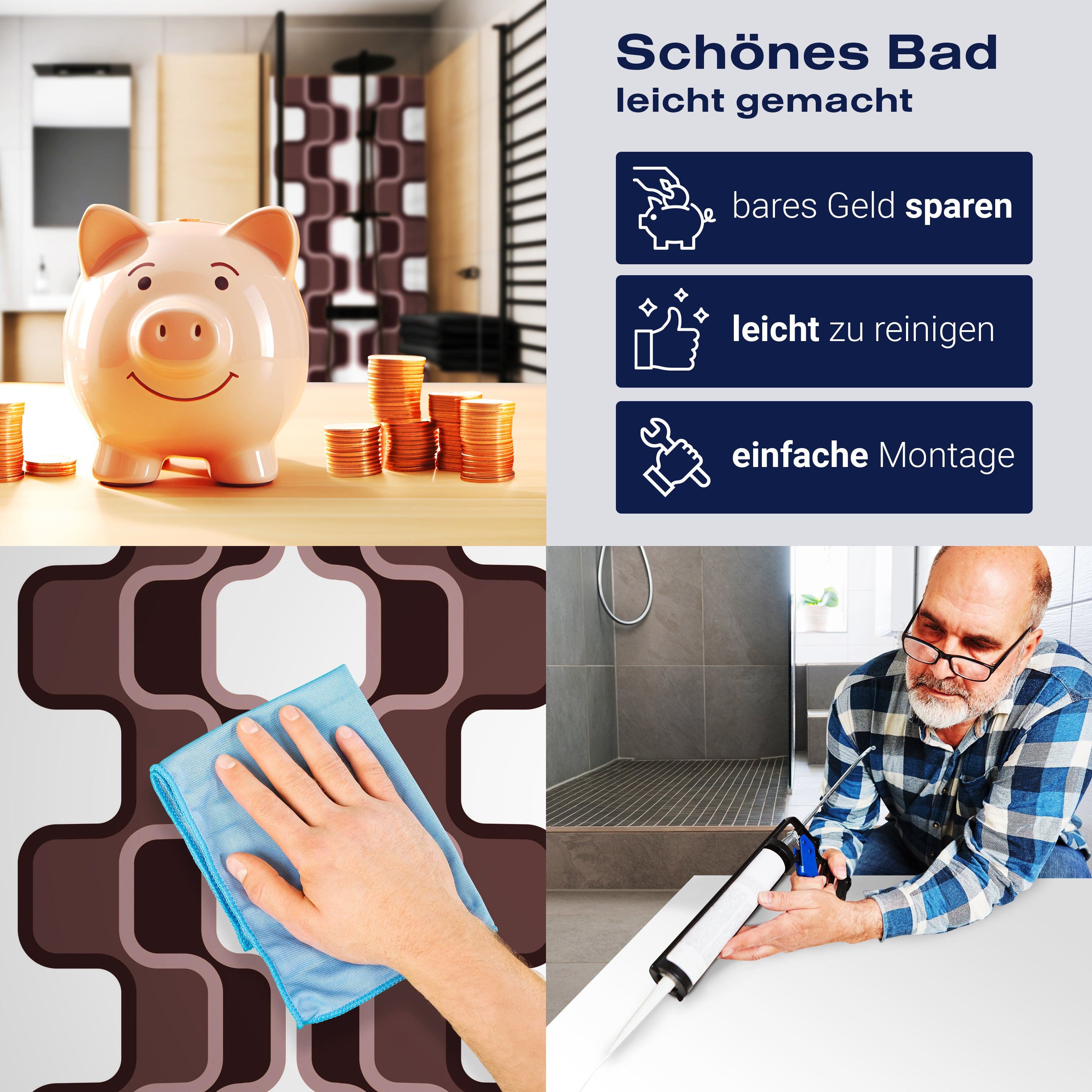 Bist du es leid, auf die langweiligen, schwer zu reinigende Fliesen in deiner Dusche zu schauen? Stell dir vor, wie dein Bad mit einer stilvollen, modernen Rückwand zum Leben erwacht! Unsere Duschwand 'Retromuster Coffee Muster' ist nicht nur ein optisches Highlight, sondern auch praktisch und pflegeleicht.