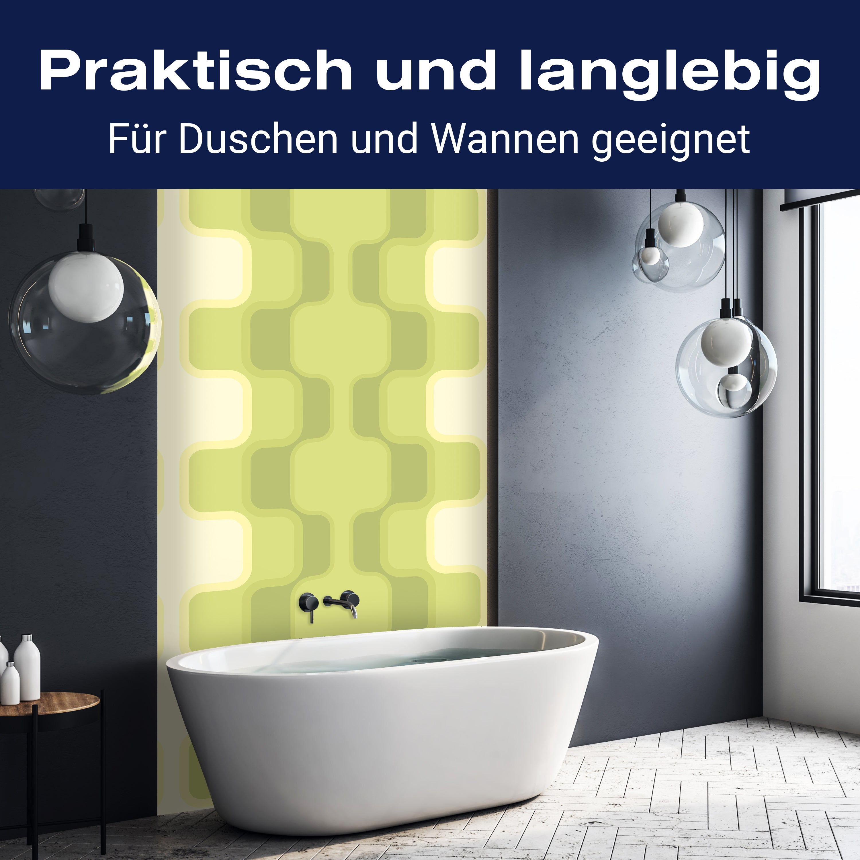 Bist du es leid, auf die langweiligen, schwer zu reinigende Fliesen in deiner Dusche zu schauen? Stell dir vor, wie dein Bad mit einer stilvollen, modernen Rückwand zum Leben erwacht! Unsere Duschwand 'Retromuster Grün Muster' ist nicht nur ein optisches Highlight, sondern auch praktisch und pflegeleicht.