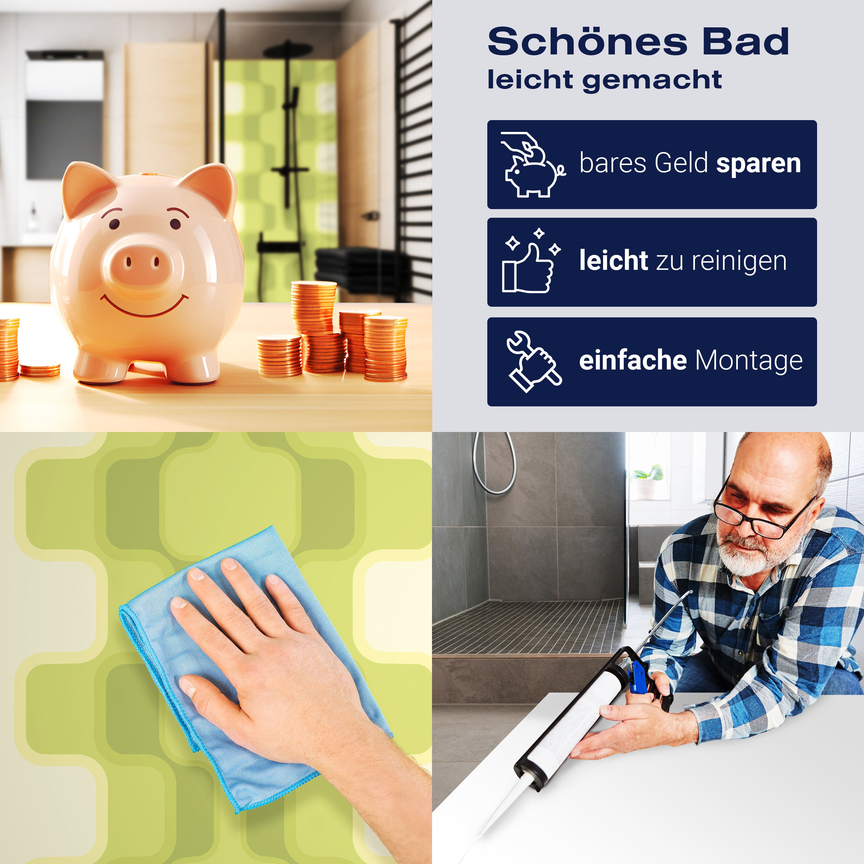 Diese Materialien bieten im Vergleich zu traditionellen Fliesen mehrere Vorteile. Sie haben eine fugenlose Oberfläche, was bedeutet, dass sie weniger anfällig für Schimmelbildung und leichter zu reinigen sind, da sich Schmutz und Kalk nicht in Fugen festsetzen können. Darüber hinaus ermöglichen sie eine schnelle und einfache Renovierung, da sie direkt über bestehenden Fliesen montiert werden können, was Zeit und Kosten spart